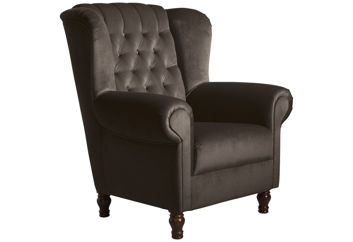 Ohrenbackensessel SamtEin repräsentativer Platz zum Lesen, Fernsehen und Entspannen. Sehr edler Ohrenbackensessel in klassischem Chesterfield-Look in Kombination mit modernen Farben und Materialien. Hergestellt in handwerklicher Wertarbeit. Mit schicker, aufwändiger Knopfheftung und geschwungenen Armlehnen für besondere Eleganz. Die Füße sind zur einfachen Selbstmontage.Scheuertouren: 100.000Pilling: 5Lichtechtheit: 5Reibechtheit (trocken): 5Reibechtheit (nass): 5Pflege: chemische Reinigung