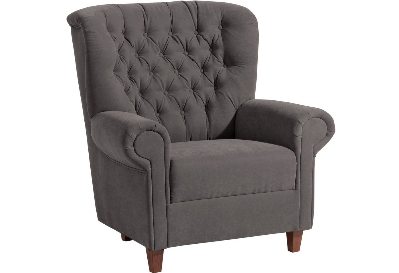 Hochlehnsessel VeloursStilvoller Hochlehnsessel mit charakteristischer Knopfheftung im Rücken. Seine liebevollen Details und die aufwändige handwerkliche Verarbeitung machen ihn zum Blickfang in jedem Raum. Die Füße sind zur einfachen Selbstmontage.Scheuertouren: 40.000Pilling: 4Lichtechtheit: 5Reibechtheit (trocken): 5Reibechtheit (nass): 3 – 4