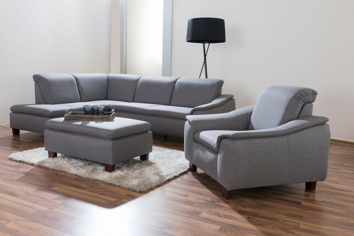 Ecksofa links mit Sofa 2,5-Sitzer rechtsDie zeitlos moderne Eckgarnitur aus dem Hause Max Winzer sorgt für ein gemütliches Wohlfühlambiente in Ihrem Wohnzimmer. Der offene Abschluss der Ottomane ist wahlweise rechts oder links erhältlich und lädt zum Entspannen ein. Die eleganten, dunkel lackierten Bucheholzfüße bilden einen stilvollen Kontrast zum Bezug in moderner Leinenoptik.Die komfortabel gepolsterte Sitzfläche mit Wellenunterfederung und Schaumpolsterung in moderner Mattenoptik bietet Sitzkomfort zum Wohlfühlen.Die Garnitur ist rundum im Originalstoff bezogen und kann frei im Raum gestellt werden.Scheuertouren: &gt, 100.000Pilling: 4 – 5Lichtechtheit: 4 – 5Reibechtheit (trocken): 4 – 5Reibechtheit (nass): 4 – 5
