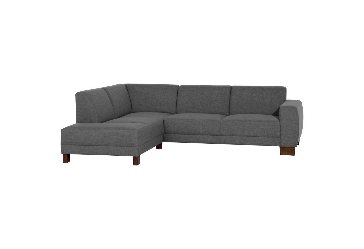 Ecksofa links mit Sofa 2,5-Sitzer rechts LeinenoptikModernes, geradliniges Ecksofa mit offenem Abschluss. Ein Klassiker in zeitlos moderner Formensprache. Der niedrige, leicht gewölbte Rücken macht dieses Sofa zur perfekten Loungegarnitur. Der Bezug aus Flachgewebe in moderner Leinenstruktur mit angenehmen Griff und die massiven Buchefüße in dunklem Nussbaumfarbton komplettieren das Gesamtbild. Der Rücken ist ebenfalls im Originalstoff bezogen, damit ist die Polsterecke frei im Raum stellbar.Scheuertouren: 23.000Pilling: 3 – 4Lichtechtheit: 5Reibechtheit (trocken): 4 – 5Reibechtheit (nass): 4 – 5Pflege: waschbar bei 40 °C