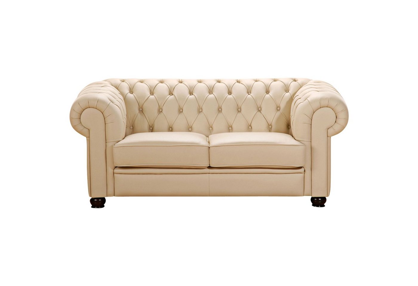 Sofa 2-Sitzer KunstlederChandler holt den englischen Chesterfield Stil in Ihr Wohnzimmer. Mit handwerklicher Wertarbeit wurden die aufwändigen Knopfheftungen im Rücken und den geschwungenen Armlehnen gefertigt. Gearbeitet mit viel Liebe zum Detail erhält dieses Sofa seinen markanten, unverwechselbaren Look. Auch die Rückseite ist mit Leder bezogen, damit ist das Sofa frei im Raum stellbar. Ein echter Klassiker! Die Füße sind zur einfachen Selbstmontage.Scheuertouren: &gt, 45.000Lichtechtheit: 4Reibechtheit (trocken): 4 – 5Reibechtheit (nass): 4 – 5