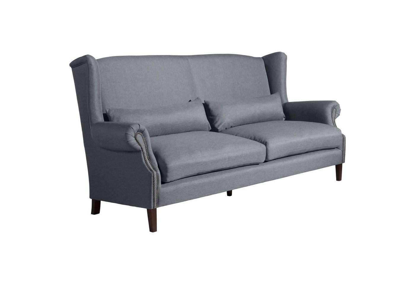 Sofa 3-Sitzer (2-geteilt)Gemütliches Sofa im Ohrenbackenstil mit vielen aufwendigen Details. Die elegant geschwungenen Armlehnen verfügen über ein dekoratives Ziernagelband. Die losen Sitzkissen mit weicher Schaumstoffflockenfüllung sind mit einem Klettverschluss am Korpus befestigt. Die mitgelieferten Zierkissen sorgen für zusätzlichen Sitzkomfort und unterstreichen die behagliche Optik. Flora ist als 2-Sitzer und 3-Sitzer erhältlich und kann auch um einen passenden Einzelsessel ergänzt werden.Scheuertouren: &gt, 100.000Pilling: 4 – 5Lichtechtheit: 4 – 5Reibechtheit (trocken): 4 – 5Reibechtheit (nass): 4 – 5