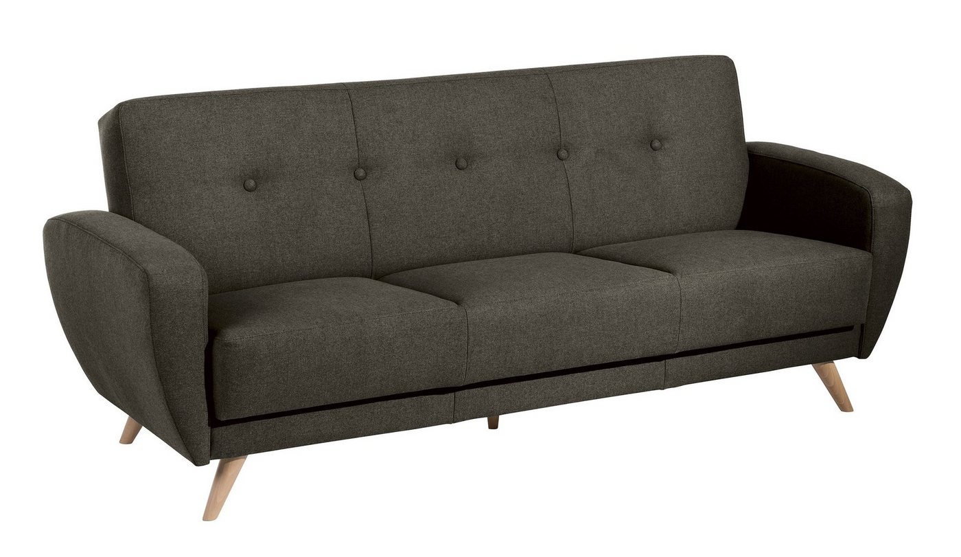 Sofa 3-Sitzer mit Bettfunktion SamtJetzt müssen Sie sich nicht mehr zwischen Design und Funktion entscheiden! Mit Jerry erwerben Sie ein Sofa mit Bettfunktion, das an den Stil der 50er und 60er Jahre erinnert. Aufgeklappt beträgt die Liegefläche ca. 177 x 105 cm. Die Füße sind zur einfachen Selbstmontage.Scheuertouren: &gt, 45.000Pilling: 4Lichtechtheit: 4 – 5Reibechtheit (trocken): 4 – 5