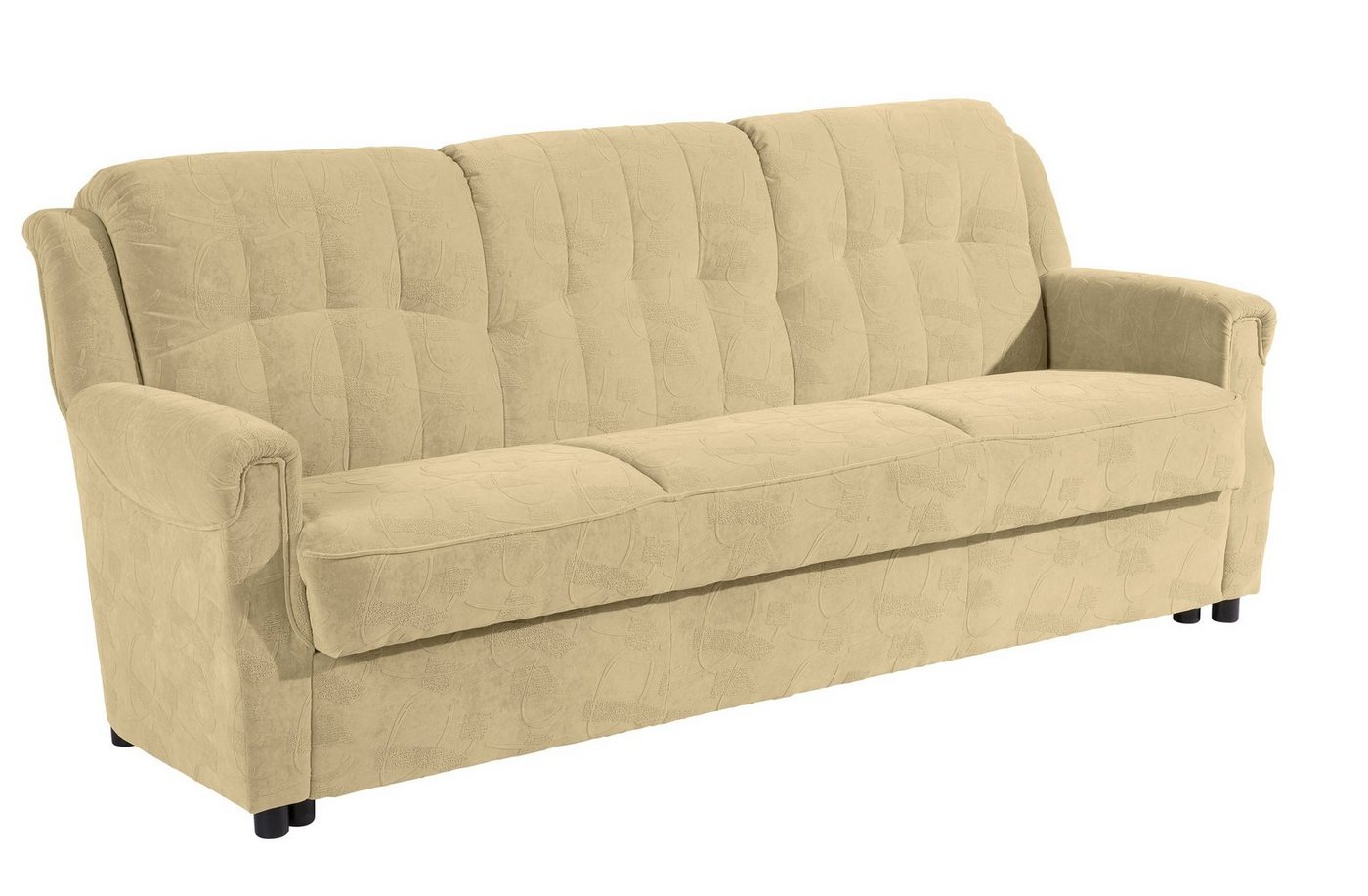 Sofa 3-Sitzer mit Bettfunktion MicrofaserDas Modell Moldau gehört zu unseren Klassikern. Der 3-Sitzer verfügt über eine praktische Kipp-Funktion. Ausgeklappt entsteht eine Liegefläche von ca. 112x178cm für spontane Übernachtungsgäste. Die Polsterung mit Federkern sorgt für dauerhaften Sitzkomfort. Unterstrichen wird der wohnliche Charakter des 3-Sitzers durch den weichen Bezug aus feinem Microvelours.Scheuertouren: 100.000Pilling: 4Lichtechtheit: 5Reibechtheit (trocken): 5Reibechtheit (nass): 3 – 4