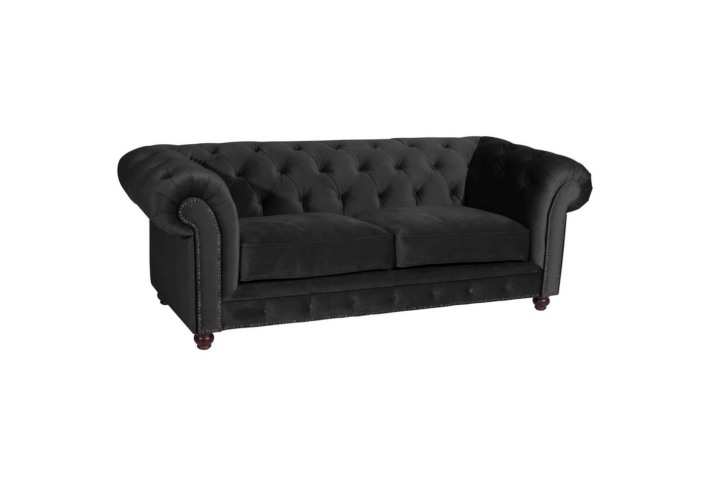 Sofa 2,5-Sitzer SamtOrleans holt den englischen Chesterfield Stil in Ihr Wohnzimmer. Mit handwerklicher Wertarbeit wurde die aufwändige Knopfheftung im Rücken, an der Sitzrampe und den geschwungenen Armlehnen gefertigt. Gearbeitet mit viel Liebe zum Detail erhält dieses Sofa seinen markanten, unverwechselbaren Look. Auch die Rückseite ist mit Stoff bezogen, damit ist das Sofa frei im Raum stellbar. Die Füße sind zur einfachen Selbstmontage.Scheuertouren: 100.000Pilling: 5Lichtechtheit: 5Reibechtheit (trocken): 5Reibechtheit (nass): 5Pflege: chemische Reinigung
