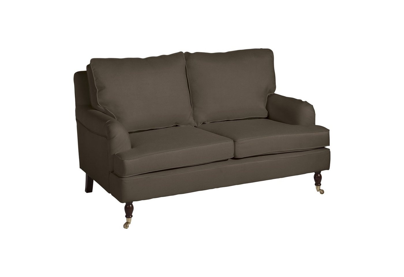 Sofa 2-SitzerDer neue harmonische Mittelpunkt in Ihrem Wohnzimmer: wunderschönes Sitzmöbel in geschwungener Form. Die Klavierfüße vorne lassen das Möbelstück besonders edel wirken. Die Sitz- und Rückenkissen sind lose, das Sitzkissen ist mit Klettverschluss am Korpus gegen Verrutschen fixiert. Das Sofa ist frei im Raum stellbar, da die Rückseite mit Originalstoff bezogen ist. Die Füße sind zur einfachen Selbstmontage.Scheuertouren: &gt, 100.000Pilling: 4 – 5Lichtechtheit: 4 – 5Reibechtheit (trocken): 4 – 5Reibechtheit (nass): 4 – 5
