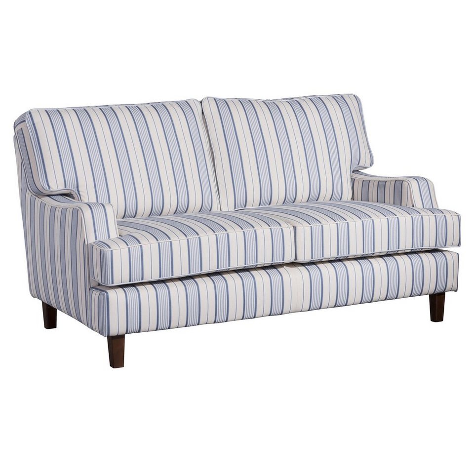 Sofa 2-Sitzer gestreiftMit seiner geschwungenen Form wird dieses wunderschöne Sofa der neue harmonische Mittelpunkt in Ihrem Wohnzimmer. Pete ist mit einem modernen Streifenstoff bezogen, welcher den Landhausstil perfekt unterstreicht. Die Sitz- und Rückenkissen sind lose und somit auch ohne große Mühe abnehmbar. Das Sofa ist frei im Raum stellbar, da die Rückseite mit Originalstoff bezogen ist. Die Füße sind zur einfachen Selbstmontage.Scheuertouren: &gt, 26.000Pilling: 4Lichtechtheit: 4 – 5Reibechtheit (trocken): 4 – 5Reibechtheit (nass): 4 – 5Pflege: waschbar bei 30 °C