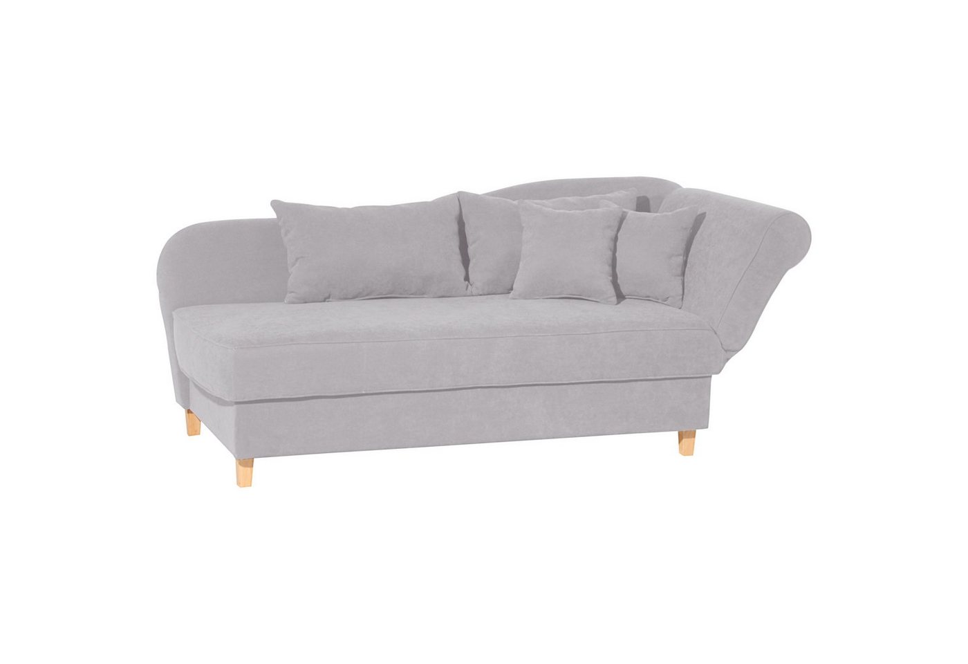 Recamiere mit Armteil rechts klappbar VeloursKlassische Recamiere mit praktischen Funktionen. Die Armlehne lässt sich in vier verschieden Postionen verstellen und bietet so eine Einzelliegefläche. Perfekt für ein kleines Nickerchen zwischendurch oder einen gelegentlichen Übernachtungsgast. Inklusive 2 rechteckigen Kissen und 2 Zierkissen. Ein großzügiger Bettkasten befindet sich unter der Sitzfläche. Hier lassen sich Bettdecken &amp, Co. bequem verstauen. Die Füße sind zur einfachen Selbstmontage.Scheuertouren: 40.000Pilling: 4Lichtechtheit: 5Reibechtheit (trocken): 5Reibechtheit (nass): 3 – 4