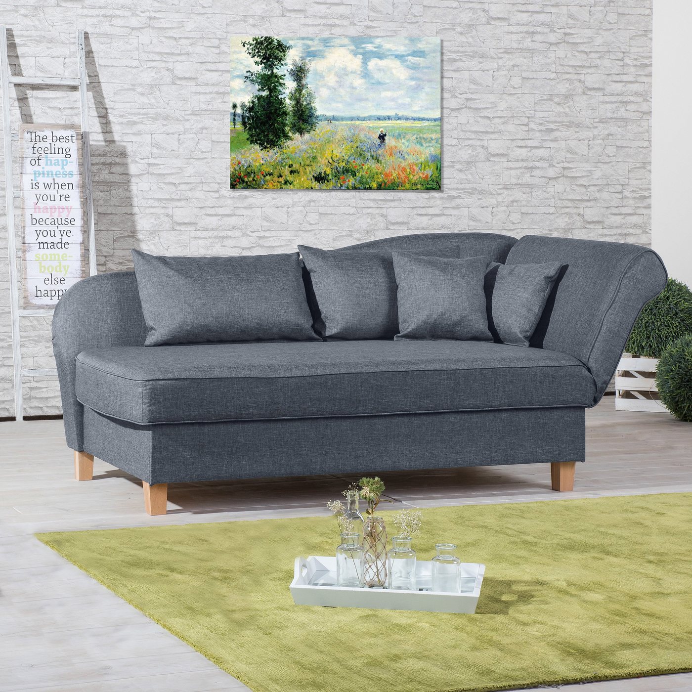 Recamiere mit Armteil rechts klappbarKlassische Recamiere mit praktischen Funktionen. Die Armlehne lässt sich in vier verschieden Postionen verstellen und bietet so eine Einzelliegefläche. Perfekt für ein kleines Nickerchen zwischendurch oder einen gelegentlichen Übernachtungsgast. Inklusive 2 rechteckigen Kissen und 2 Zierkissen. Ein großzügiger Bettkasten befindet sich unter der Sitzfläche. Hier lassen sich Bettdecken &amp, Co. bequem verstauen. Die Füße sind zur einfachen Selbstmontage.Scheuertouren: &gt, 100.000Pilling: 4 – 5Lichtechtheit: 4 – 5Reibechtheit (trocken): 4 – 5Reibechtheit (nass): 4 – 5