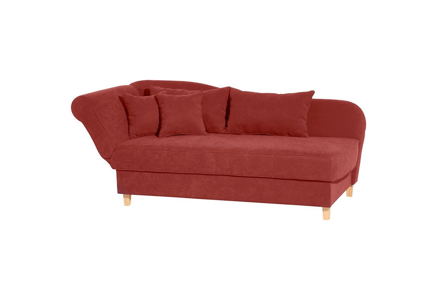 Recamiere mit Armteil links klappbar VeloursKlassische Recamiere mit praktischen Funktionen. Die Armlehne lässt sich in vier verschieden Postionen verstellen und bietet so eine Einzelliegefläche. Perfekt für ein kleines Nickerchen zwischendurch oder einen gelegentlichen Übernachtungsgast. Inklusive 2 rechteckigen Kissen und 2 Zierkissen. Ein großzügiger Bettkasten befindet sich unter der Sitzfläche. Hier lassen sich Bettdecken &amp, Co. bequem verstauen. Die Füße sind zur einfachen Selbstmontage.Scheuertouren: 40.000Pilling: 4Lichtechtheit: 5Reibechtheit (trocken): 5Reibechtheit (nass): 3 – 4