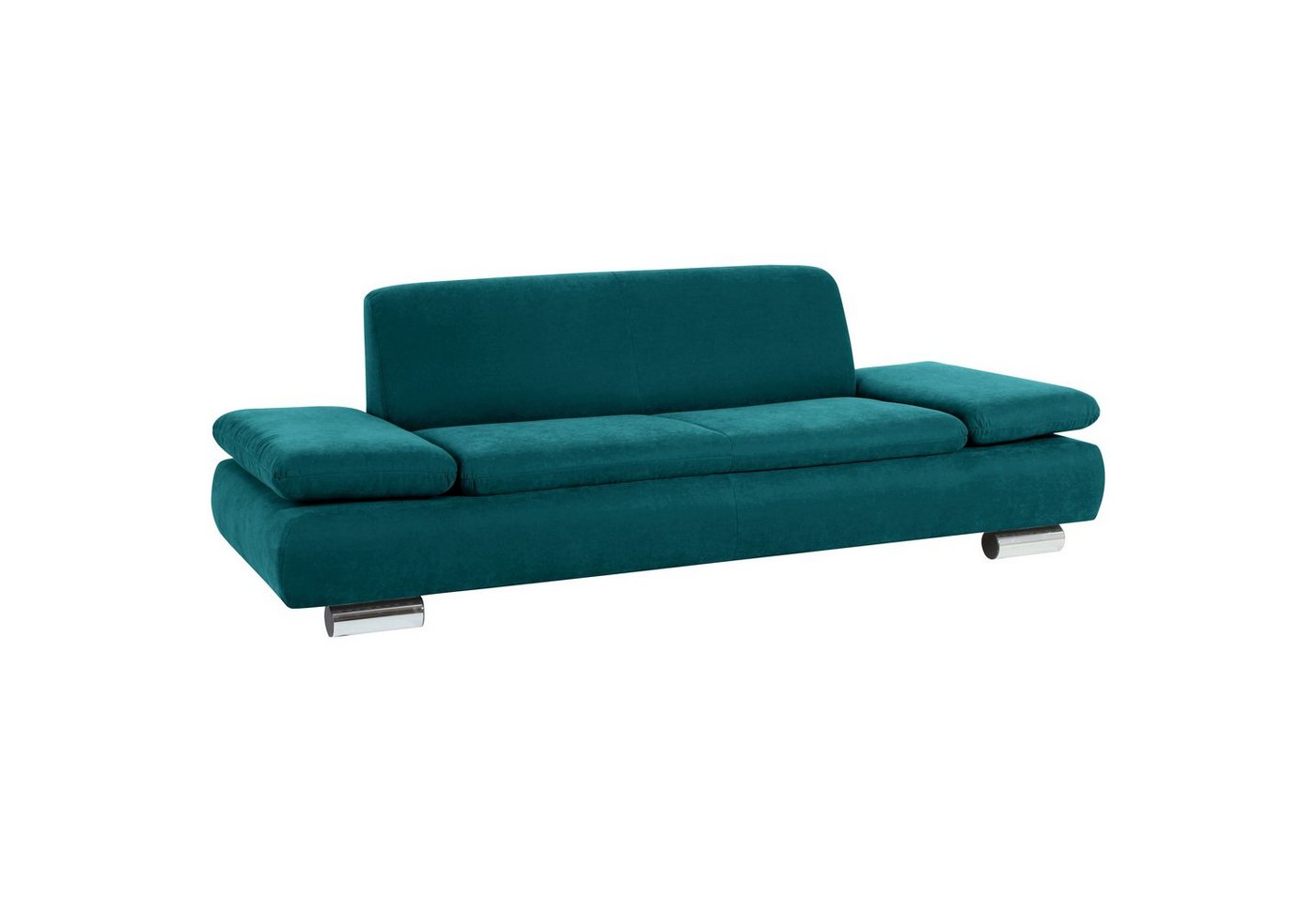 Sofa 2,5-Sitzer VeloursEdles Sofa mit moderner Anmutung. Ob Liegen oder Sitzen, die verstellbaren Funktionsarmteile bieten Komfort in jeder Position. Die zusätzlich aufgesetzte Schaumpolsterung auf der Sitzfläche sorgt für einen bequemen und weichen Sitzkomfort. Die verchromten Metallfüße werten das Erscheinungsbild zusätzlich auf. Die Rückseite ist mit Originalstoff bezogen, somit ist das Sofa frei im Raum stellbar.Scheuertouren: 40.000Pilling: 4Lichtechtheit: 5Reibechtheit (trocken): 5Reibechtheit (nass): 3 – 4