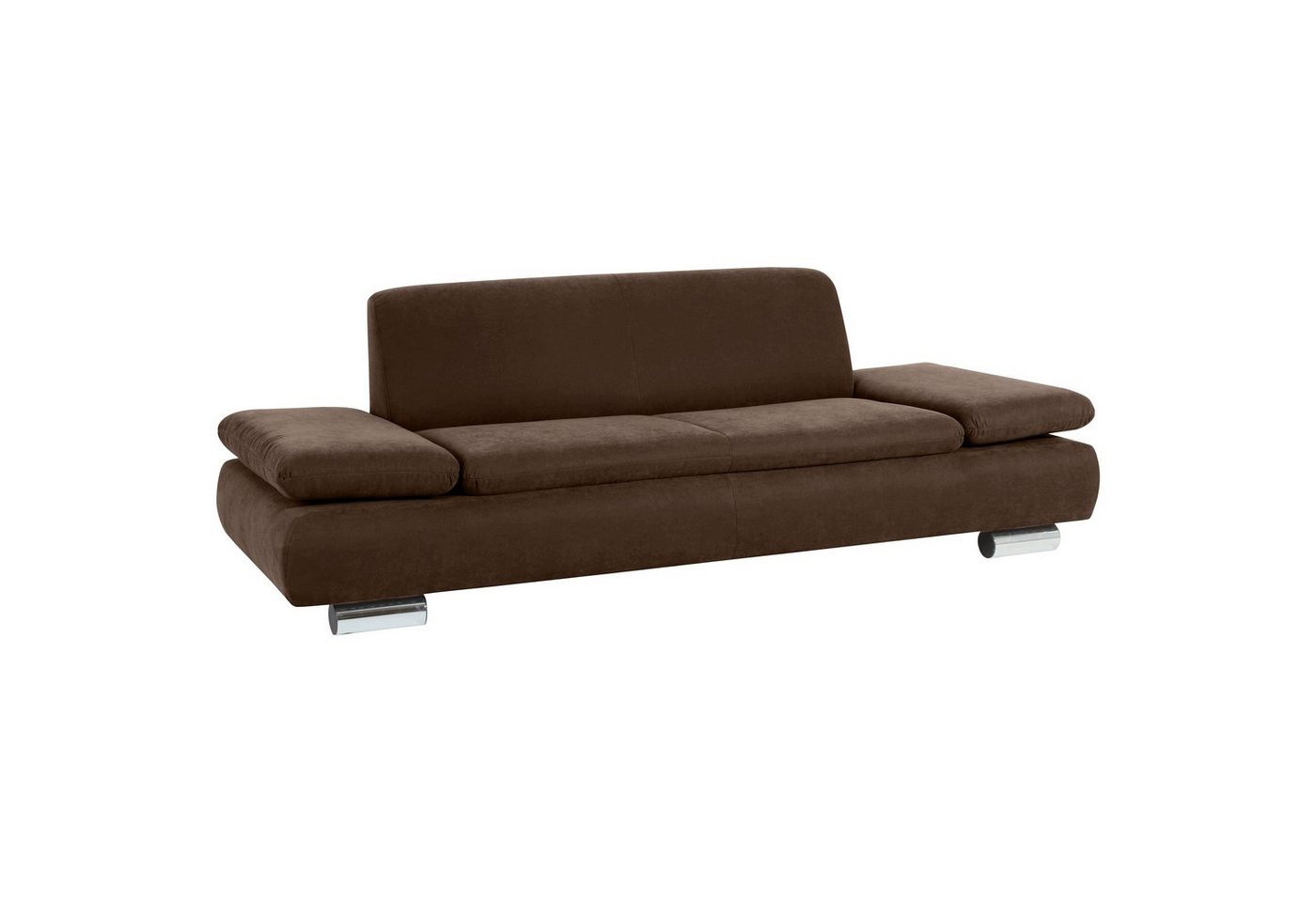 Sofa 2,5-Sitzer VeloursEdles Sofa mit moderner Anmutung. Ob Liegen oder Sitzen, die verstellbaren Funktionsarmteile bieten Komfort in jeder Position. Die zusätzlich aufgesetzte Schaumpolsterung auf der Sitzfläche sorgt für einen bequemen und weichen Sitzkomfort. Die verchromten Metallfüße werten das Erscheinungsbild zusätzlich auf. Die Rückseite ist mit Originalstoff bezogen, somit ist das Sofa frei im Raum stellbar.Scheuertouren: 40.000Pilling: 4Lichtechtheit: 5Reibechtheit (trocken): 5Reibechtheit (nass): 3 – 4