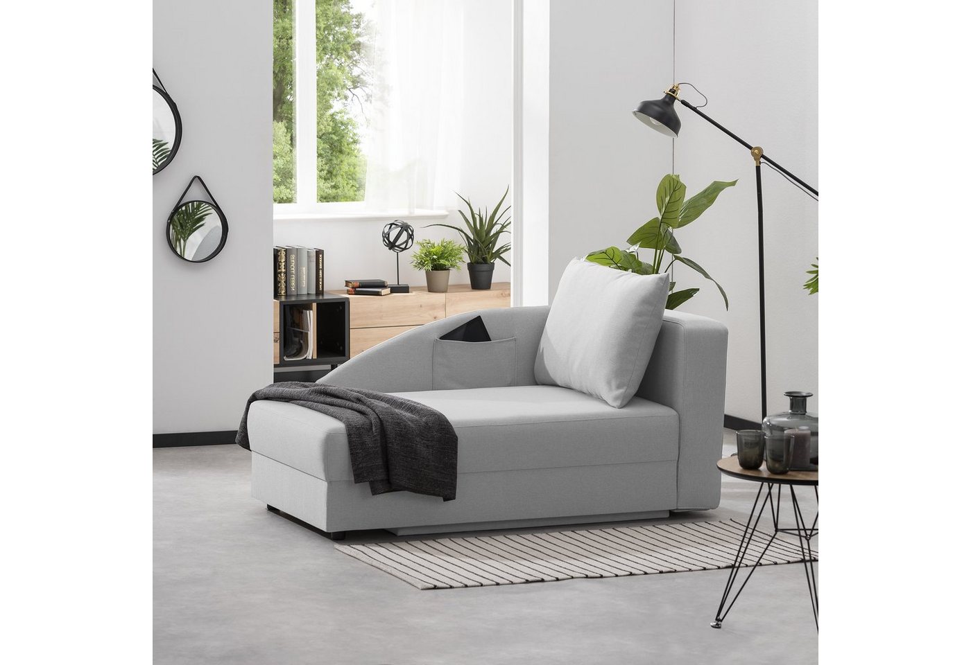 Recamiere Armlehne linksPraktisch durchdachte Recamiere für kleine Räume, die sich perfekt zum Relaxen und Entspannen eignet. Die bequeme Polsterung sorgt für optimalen Sitz- und Liegekomfort. Das mitgelieferte Kissen ergänzt die Rücken- bzw. Seitenlehne, so dass sich ein Sofa- oder Longchaircharakter ergibt. In der seitlich angebrachten Stofftasche lassen sich Tablets, Zeitschriften &amp, Co. verstauen. Mit nur wenigen Handgriffen verwandelt sich die Sitzfläche in eine vollwertige Liegefläche mit intergierten Stauraum für Kissen und Decken. Tobi ist die richtige Wahl für kleine Räume und verbindet Komfort und Funktionalität. Das pflegefreundliche Flachgewebe ist vielseitig kombinierbar. Das Seitenteil ist rechts oder links lieferbar.Scheuertouren: &gt, 100.000Pilling: 4 – 5Lichtechtheit: 5 – 6Reibechtheit (trocken): 4 – 5Reibechtheit (nass): 4 – 5