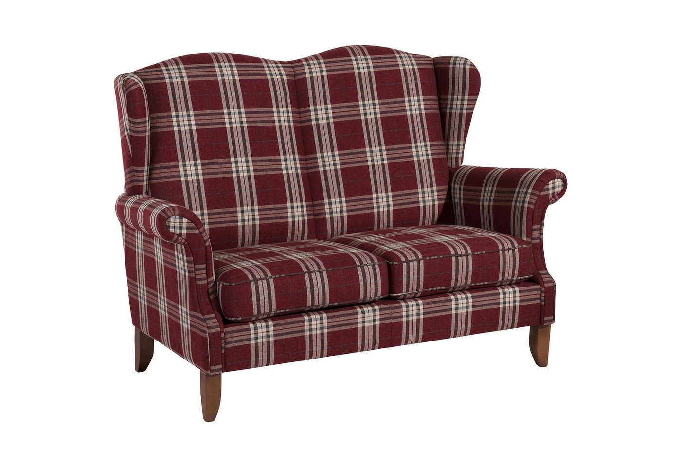 Sofa 2-Sitzer kariertEin elegantes Sofa im klassischen Design. Die raffiniert geschwungenen Armlehnen machen es zu einem besonderen Blickfang. Das lose Sitzkissen, auf einem massiven Holzuntergestell, ist mittels Klettverschluss befestigt, somit rutscht es nicht weg. Die Füße sind zur einfachen Selbstmontage.Scheuertouren: 20.000