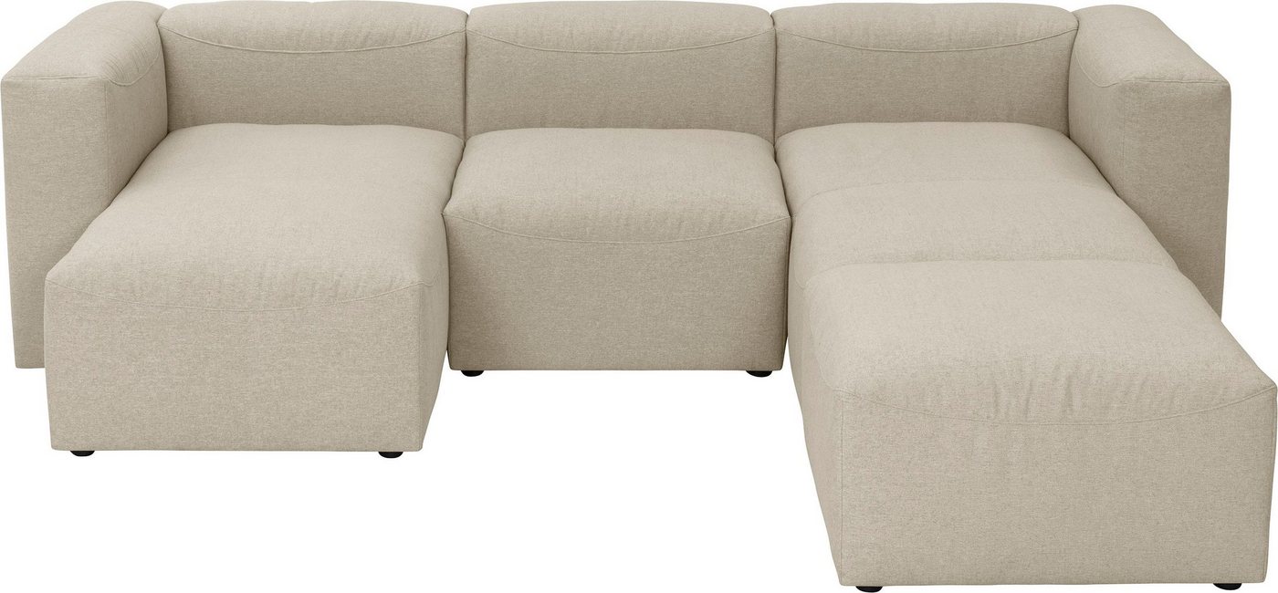 Max Winzer® »Lena«: Modulare Möbelserie mit Kuschelfaktor Hochwertige Materialien und eine betont legere Verarbeitung machen Lena zu einem echten Lieblingsplatz. Die vier Grundelemente Longchair links/rechts, Eckelement links/rechts, Zwischenelement und Hocker lassen sich in unterschiedlichen Varianten kombinieren und bei Bedarf immer wieder neu anordnen. Die Möbelgleiter mit Antirutschbeschichtung verhindern ein Verrutschen der Elemente, eine Montage oder zusätzliche Fixierung ist nicht erforderlich. Die extra große Sitztiefe von 75 cm lädt zum Relaxen und Chillen ein und kann durch die separat erhältlichen Kissen auf eine normale Sofasitztiefe von ca. 60 cm verkleinert werden. Die Wohnlandschaft »Lena« von Max Winzer® mit Schaumstoffpolsterung beeindruckt durch eine erstklassige Qualität und außergewöhnlichen Sitzkomfort. Sie besticht mit einer modernen Optik und fällt durch geschwungene Ziernähte auf. Ihr modernes Design lässt sich in zahlreiche Wohnkonzepte integrieren – von elegant bis zeitlos. Dank seiner Gurtunterfederung sowie Polsterwatte und Schaumstoffpolsterung ermöglicht das Sofa-Set ein ausgezeichnetes Sitzen. Gefertigt ist die Polsterecke in pflegeleichter und hochwertiger Bezugsqualität. Ein gemütlicher Wohlfühlplatz im Zuhause: die Wohnlandschaft »Lena« von Max Winzer® mit Schaumstoffpolsterung.