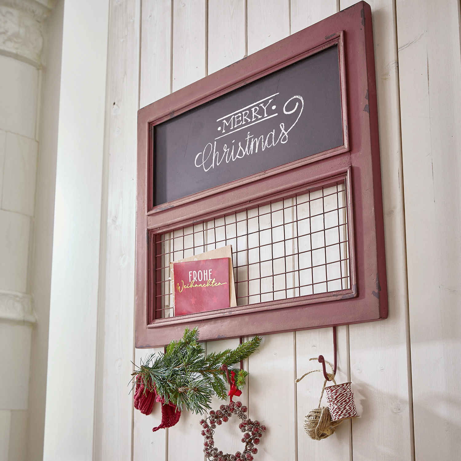 Dieses Memoboard mit Organizer-Funktionalität ist nicht nur für Freunde des rustikalen Industrial-Stils ein echtes Liebhaberstück. Es sorgt für Ordnung, ohne viel Platz zu verschwenden und ist zugleich ein attraktiver Wandschmuck. Geschmackvolle Industrial-Ästhetik trifft auf vielseitige Funktionen, zum Beispiel die beschreibbare Kreidefläche. Hier lassen sich Notizen schnell aufschreiben oder auch Nachrichten hinterlassen. Ganz unten sind zusätzlich drei Haken angebracht, an denen Handtücher, Schlüssel und Co ihren Platz finden. Ein hübsches Gitternetz bietet ebenfalls Funktionen: Heften Sie mittels Magnete Bilder oder Zettel daran oder nutzen Sie dazu einfach Wäscheklammern. Sie entscheiden, was Sie aus diesem tollen Board alles machen. Eingerahmt ist das Ganze in kunstvoll gearbeitetes Mangoholz, das eine sehr schöne Oberfläche bietet und sehr langlebig ist. Überzogen ist es mit einem hübschen Shabby-Finish, das den Industrial-Retro-Charme noch verstärkt. Es ist einfach die perfekte Aufbewahrung für Listen, Autoschlüssel, Nachrichten, Notizen und noch so vieles mehr. Sie werden es sehen!