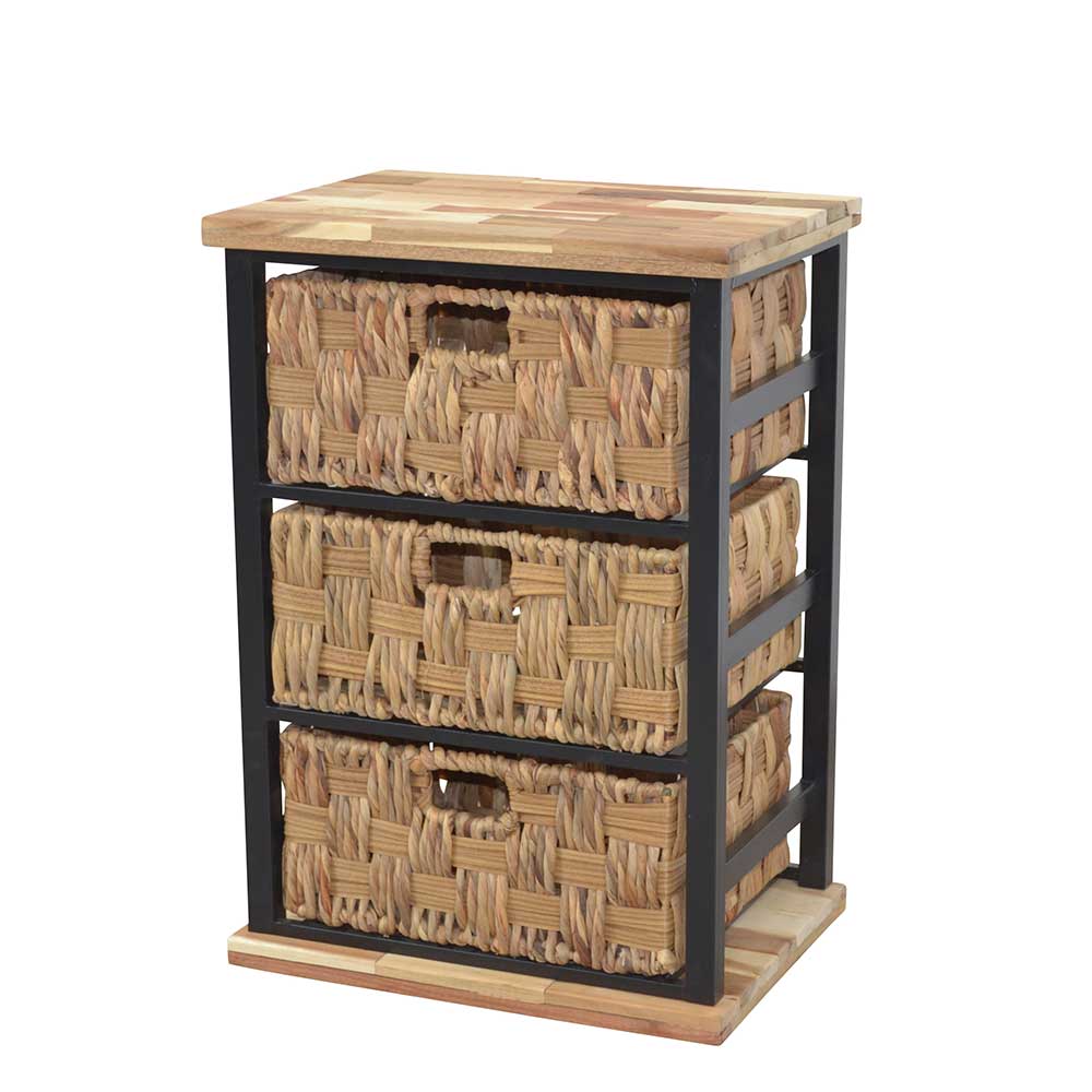 Nachtkommode mit Körben Kiefer Massivholz und Eisen