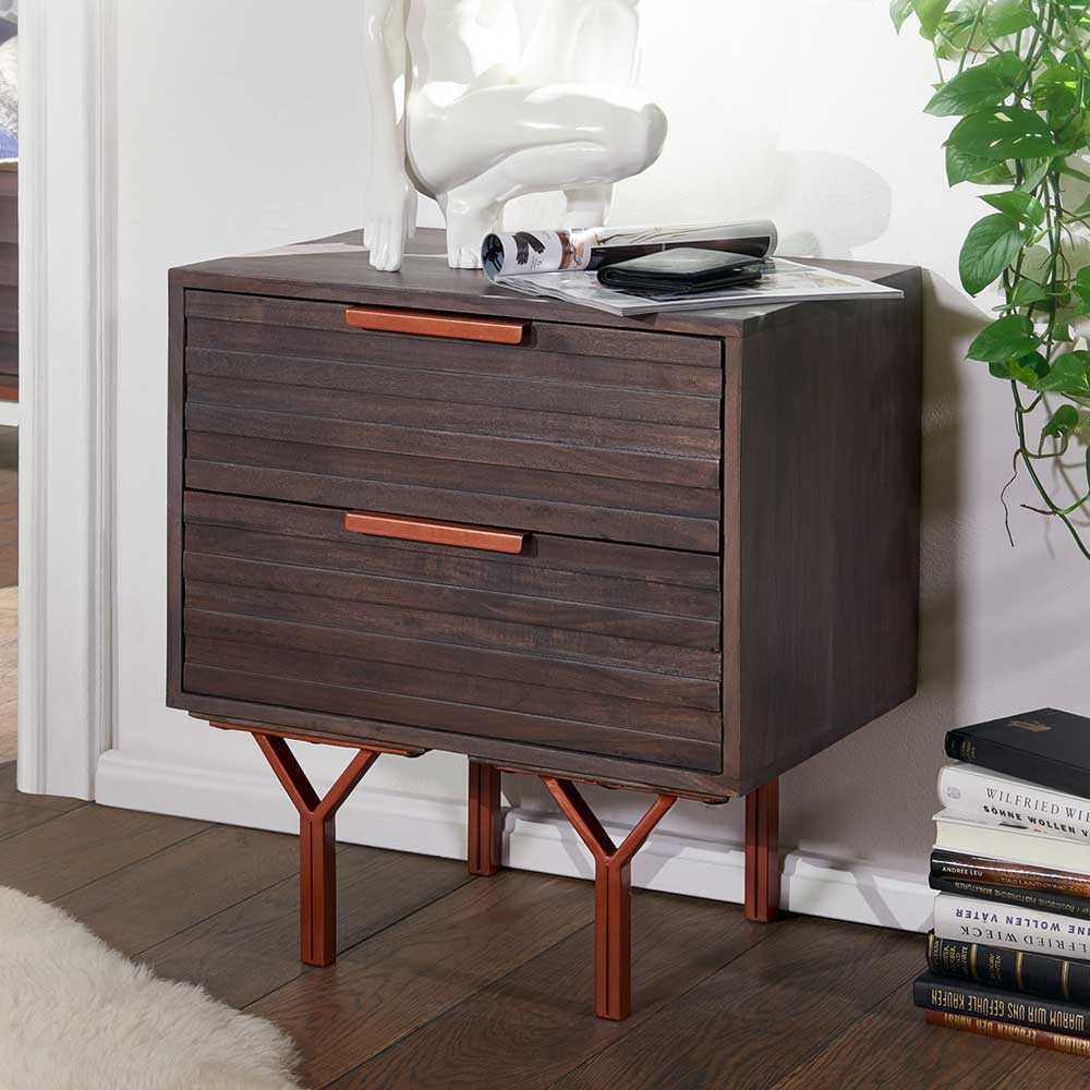– Nachttisch Grau und Kupferfarben – Nachtschrank Akazie Massivholz und Stahl – Kommode Modern – Nachtkonsole Breite: 58 – Nachtschränkchen Höhe: 65 – Beistellschrank Tiefe: 40 – Nachttischschrank Mit zwei Schubladen und mit Holzauszug – Schlafzimmer kommode Ohne Beleuchtung – Nachtkästchen Fertig montierte Anlieferung (eventuell müssen noch Kleinteile angebracht werden) – Nachtkommode 4-Fuß Gestell aus Metall – Nachttischschränkchen Massivholz Oberfläche und Gebeizt – Kommode holz Metallgriffen – Wäschekommode Rechteckige Form – Kommode massivholz Griff Form: KantengriffInformationen zur Lieferung:Die Zustellung dieses Produktes erfolgt per GLS-Paketdienst. Sollten Sie bei der Erstzustellung nicht angetroffen werden, hinterlässt der Zusteller in Ihrem Briefkasten eine Benachrichtigungskarte mit dem Hinweis auf eine zweite Anlieferung. Sollte in Ihrer Nähe ein GLS-Paketshop sein, so wird die Ware dort hinterlassen und Sie können die Ware dort abholen. Die Auslieferung erfolgt von Montags bis Freitags. Eine Zustellung an Sonn- und Feiertagen ist nicht möglich.