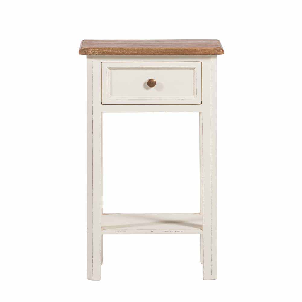 – Nachttisch Weiß und Naturfarben – Kommode Mindiholz und MDF – Nachtkonsole Landhausstil – Nachttischschrank Breite: 40 – Nachtkästchen Höhe: 65 – Nachtkommode Tiefe: 35 – Nachttischschränkchen Mit einer Schublade und mit Holzauszug – Nachttischchen Ohne Beleuchtung – Nachttisch kommode Fertig montierte Anlieferung (eventuell müssen noch Kleinteile angebracht werden) – Nachttisch schrank 4-Fuß Gestell aus Massivholz – Bettkommode Massivholz Oberfläche und Lackiert – Schlaftisch Metallgriffen – Schlafkommode Rechteckige Form – Nachttischkommode Griff Form: Knopfgriff