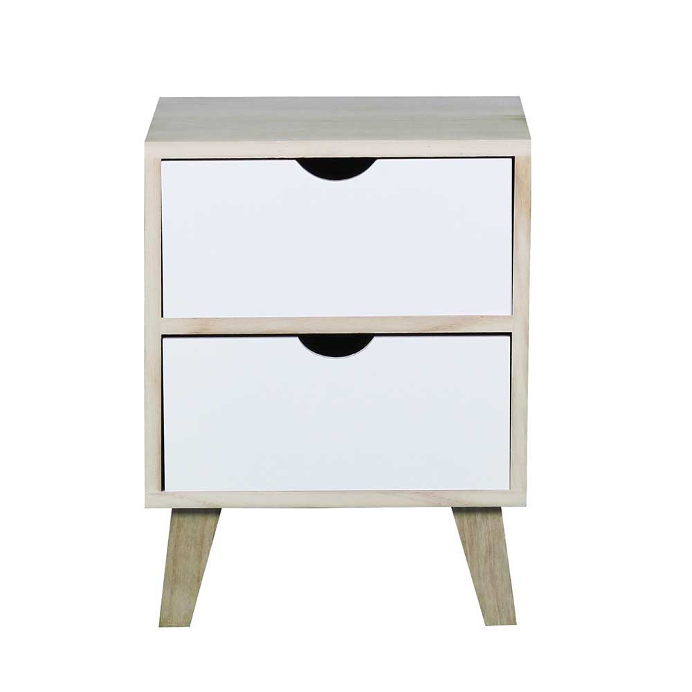 – Nachttisch Weiß und Naturfarben – Nachtschrank Kiri-Baum Massivholz und MDF – Kommode Modern – Nachtkonsole Breite: 36 – Nachtschränkchen Höhe: 47 – Beistellschrank Tiefe: 30 – Nachttischschrank Mit zwei Schubladen und mit Holzauszug – Nachtkästchen Ohne Beleuchtung – Nachtkommode Zerlegt, zum leichten Selbstaufbau (Montageanleitung liegt bei) – Nachttischschränkchen 4-Fuß Gestell aus Massivholz – Nachttischchen Lackiert – Nachttisch kommode Griffmulden – Nachttisch schrank Rechteckige FormInformationen zur Lieferung:Der Versand dieses Artikels erfolgt per DHL Paketdienst (Deutsche Post). Sollten Sie bei der Erstzustellung nicht angetroffen werden, hinterläßt der Zusteller in Ihrem Briefkasten eine Benachrichtigungskarte. Sie können die Ware dann in Ihrer Postfiliale vor Ort abholen. Die Auslieferung erfolgt von Montags bis Samstags. Eine Zustellung an Sonn- und Feiertagen ist nicht möglich.
