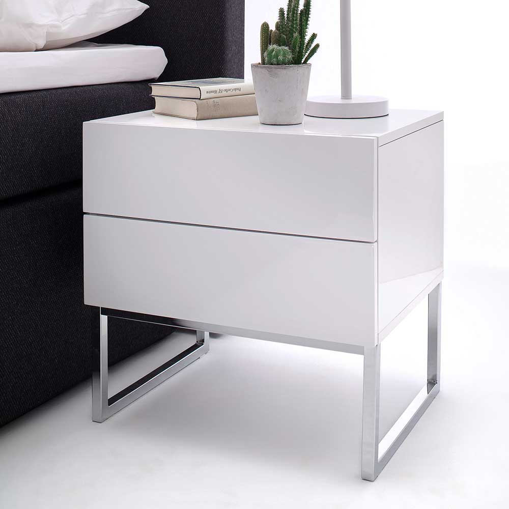 – Nachtschrank Weiß – Kommode Metall und MDF – Nachtschränkchen Modern – Nachtkonsole Breite: 50 – Beistellschrank Höhe: 50 – Nachtkästchen Tiefe: 40 – Nachtkommode Modernem Hochglanz – Bettkommode Mit zwei Schubladen, mit Push-to-open-Funktion, mit Metallauszug und mit Soft Close – Bettschränkchen Ohne Beleuchtung – Schlafkommode Zerlegt, zum leichten Selbstaufbau (Montageanleitung liegt bei) – Nachttischkommode Bügelgestell aus Metall – Metallkommode Lackiert – Rechteckige FormInformationen zur Lieferung:Der Versand dieses Artikels erfolgt per DHL Paketdienst (Deutsche Post). Sollten Sie bei der Erstzustellung nicht angetroffen werden, hinterläßt der Zusteller in Ihrem Briefkasten eine Benachrichtigungskarte. Sie können die Ware dann in Ihrer Postfiliale vor Ort abholen. Die Auslieferung erfolgt von Montags bis Samstags. Eine Zustellung an Sonn- und Feiertagen ist nicht möglich.