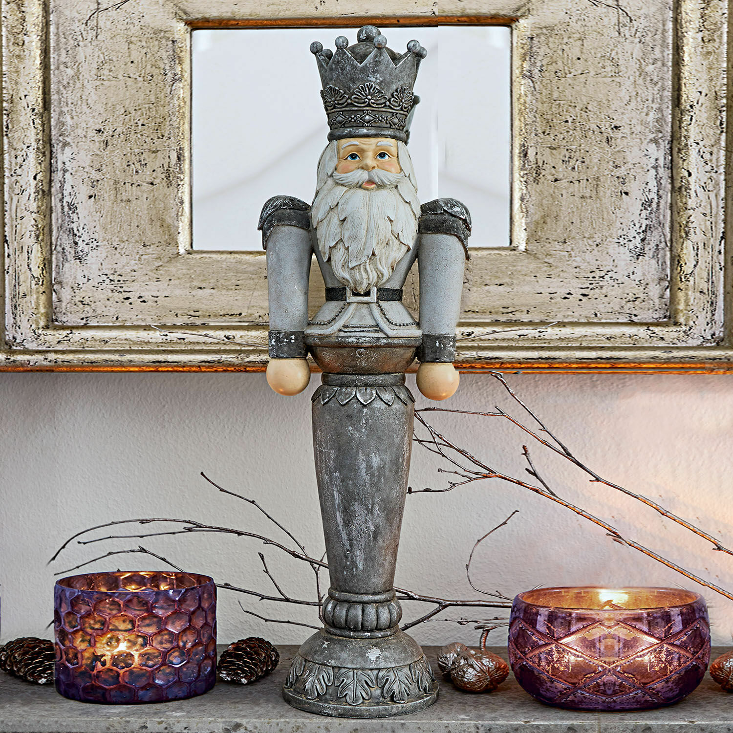 Schaffen Sie in Ihrem schönen Zuhause mit diesem kunstvollen Nussknackermännchen eine weihnachtliche Atmosphäre ganz nach Ihren Vorstellungen. Von Hand mit großer Sorgfalt und Detailliebe bemalt, bezaubert er mit seiner schmucken Retro-Optik und macht Ihre Adventszeit perfekt. Der Nussknacker wirkt so authentisch, dass er an die vielen schönen Geschichten erinnert, die man mit ihm verbindet. Mäusekönig, Zuckermandelfee, Zinnsoldat – heißen Sie all die klassischen Figuren, die zu ihm gehören, in Ihren Gedanken willkommen, und vielleicht finden Sie sogar die passenden Charaktere, die Sie dem schönen Dekoobjekt zur Seite stellen können. Aber auch umringt von Nüssen, Kerzen und Mandarinen wird er sich bei Ihnen rundum wohlfühlen.