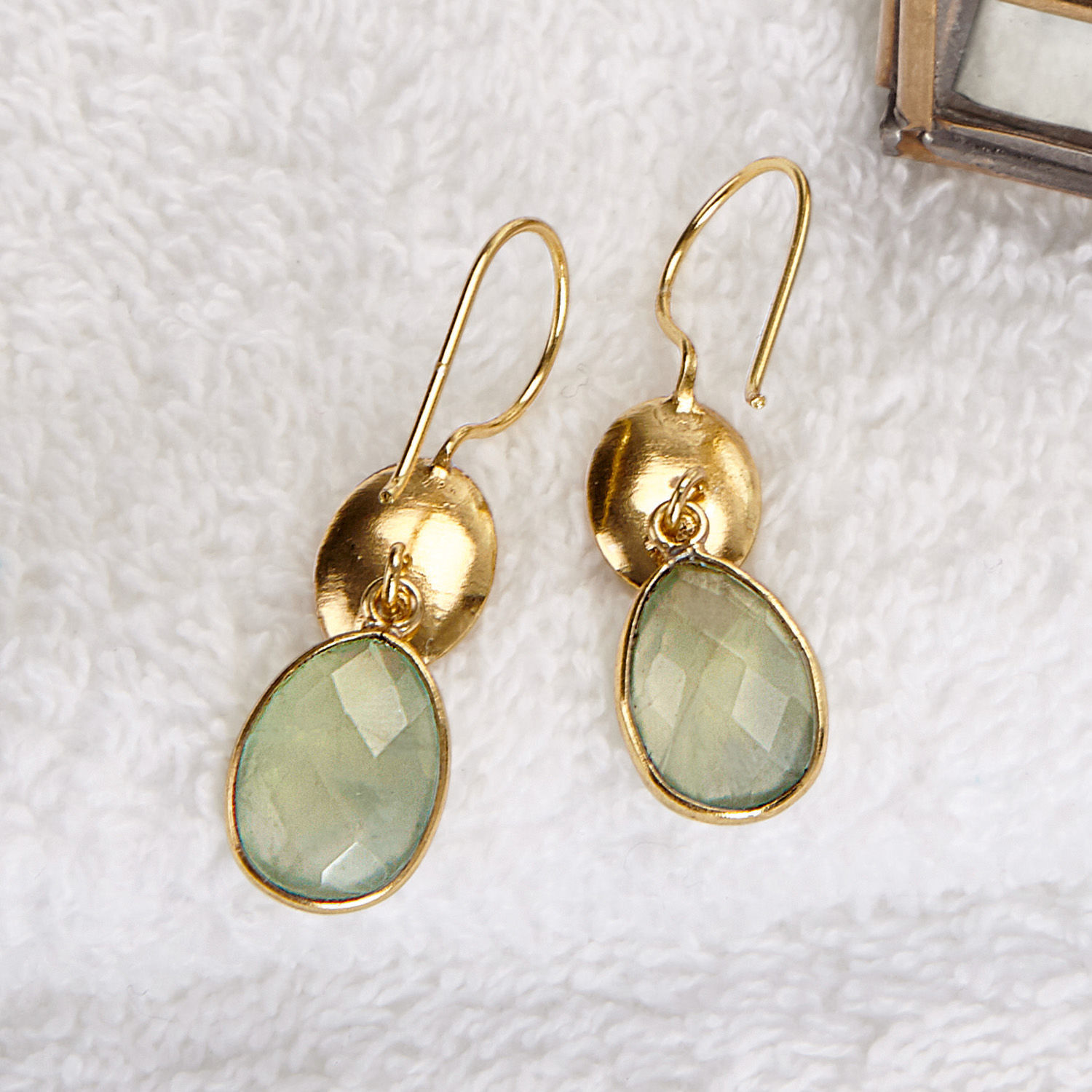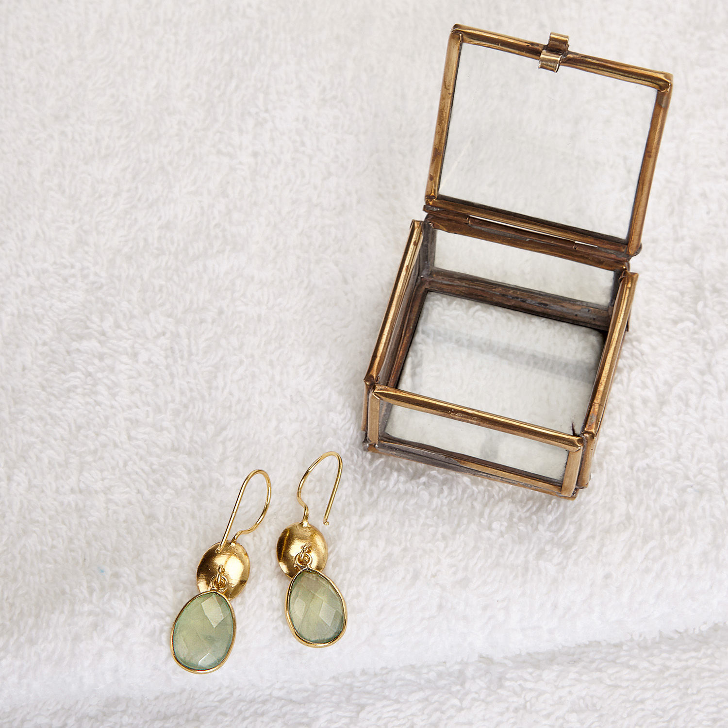 Natürlicher Prenith-Stein mit feinem Schliff und dezenter Färbung. In vergoldetes Sterling-Silber gefasst. Sie werden in einer kleinen Glasbox geliefert. Dass […]