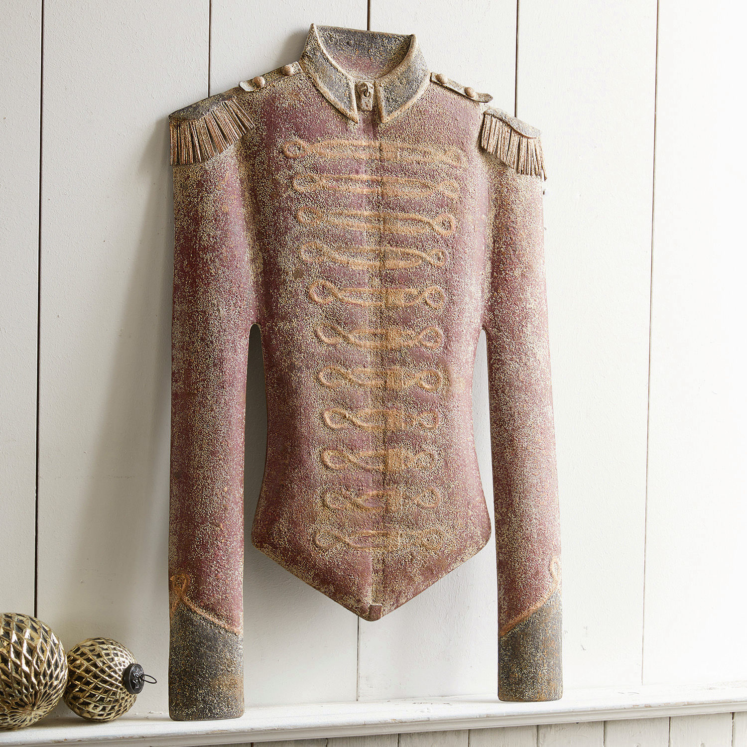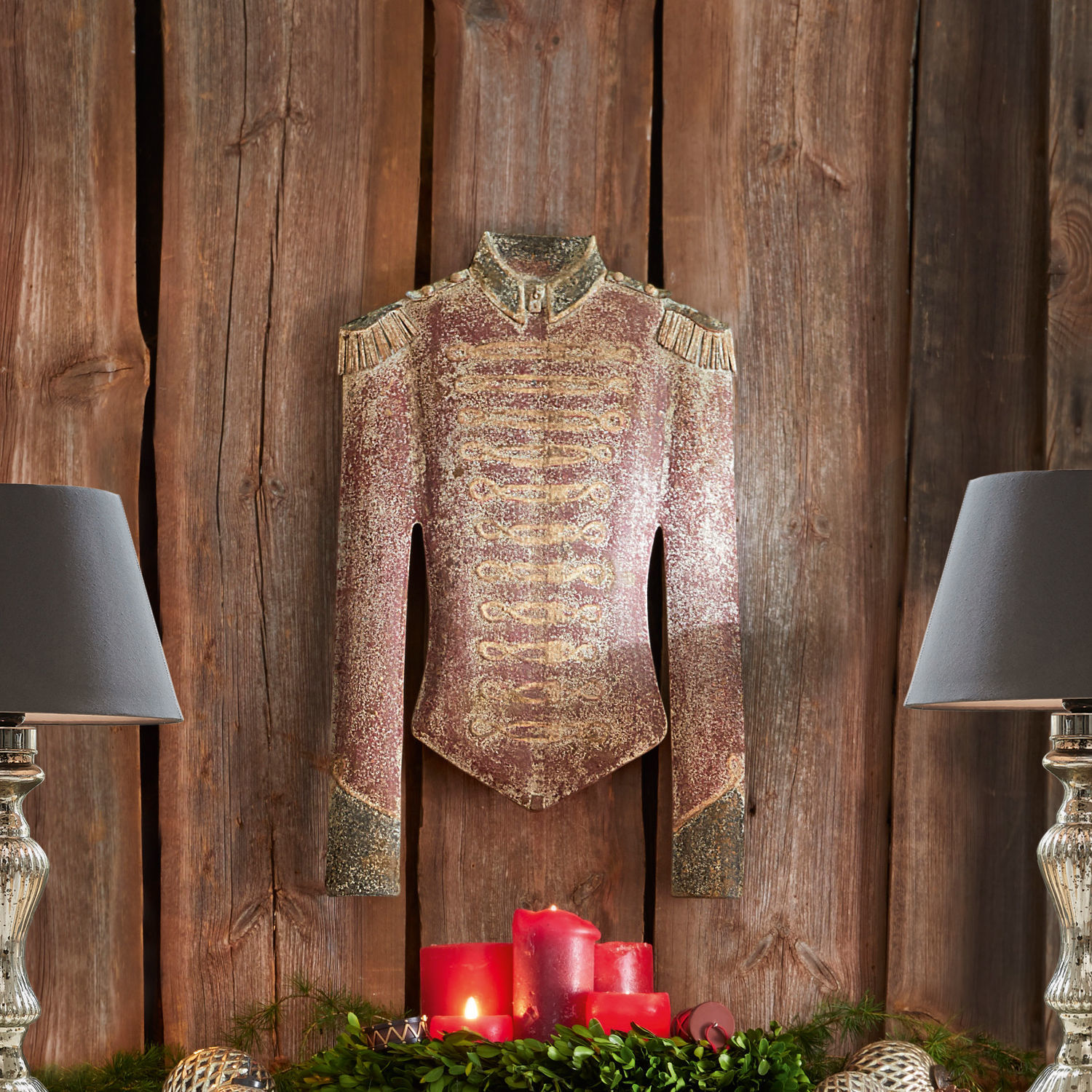Vintage-Zauber pur – diese kunstvolle, große Wandbüste ist vom Jackett eines klassischen Nussknackers inspiriert. Sie besteht aus handbemaltem Eisen mit kräftigem Antik-Finish. Detailreiche Kunst, die einen Hauch von Märchen in jeden Raum bringt. Ein verspieltes und außergewöhnliches Design, das überrascht. Dieser Wandschmuck zieht alle Blicke auf sich und adelt besonders ein Interior im Shabby-Chic. Auf der Rückseite sind zwei Aussparungen zur einfachen Aufhängung angebracht. Holen Sie sich so alle Jahre wieder einen ganz besonderen Akzent in die Festtagsstube und freuen Sie sich auf besinnliche Weihnachtsage voller nostalgischem Charme.