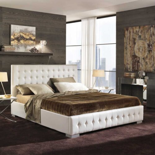 • Schlafzimmer Bett in Grau gesteppt Kunstleder