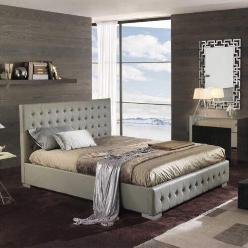 Schlafzimmer Bett in Grau gesteppt Kunstleder
