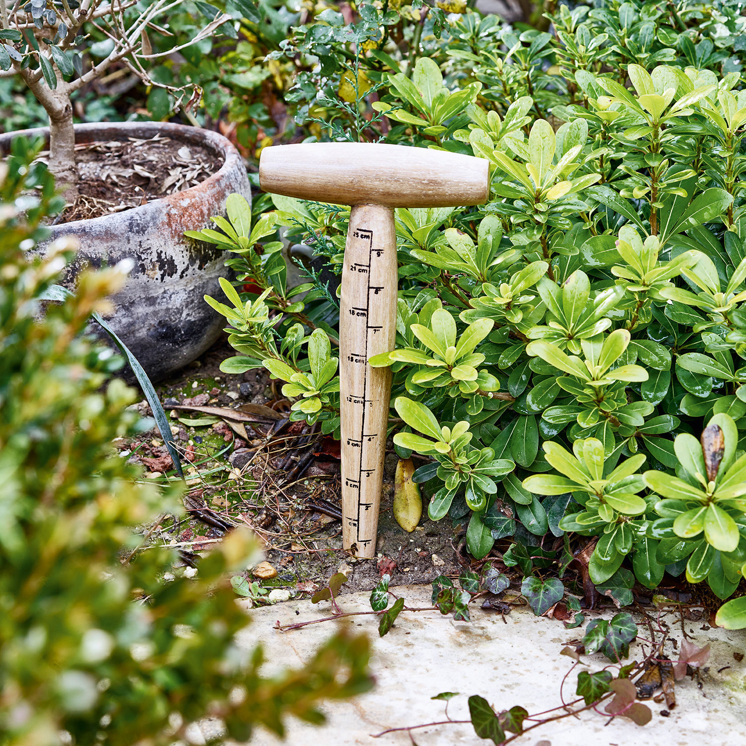 Dieses schöne Stück gehört zu den wichtigsten Werkzeugen eines Hobbygärtners und trägt unzählige Namen: Pflanzholz, Setzholz, Pflanzkeil, Pflanzbohrer, Pflanzstab, Setzdibber, Pflanzlochstecher, Dibbler und viele mehr. Namen sind Schall und Rauch, denn es geht hier vor allem um die Qualität. Dieses Schmuckstück ist aus massivem Mangoholz gefertigt und ebenso schön wie funktionell. Es ermöglicht Ihnen, perfekte Pflanzlöcher für Zwiebeln und Setzlinge zu erzeugen. Markierungen am Schaft erlauben eine präzise Tiefenplatzierung. Da Saatgut aus Übersee häufig ohne Zentimeter-Angaben geliefert wird, ist das Pflanzholz zusätzlich mit Inch-Angaben beschriftet.