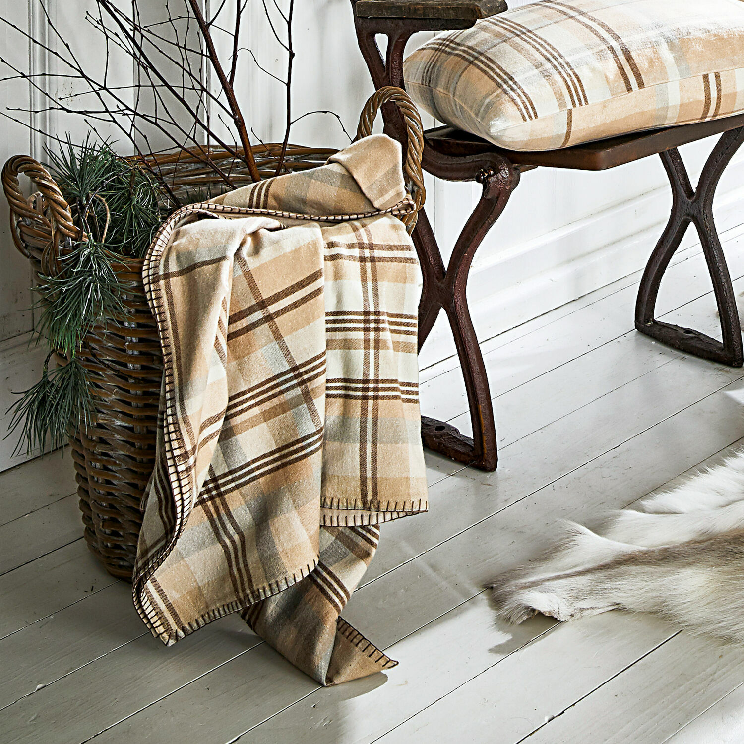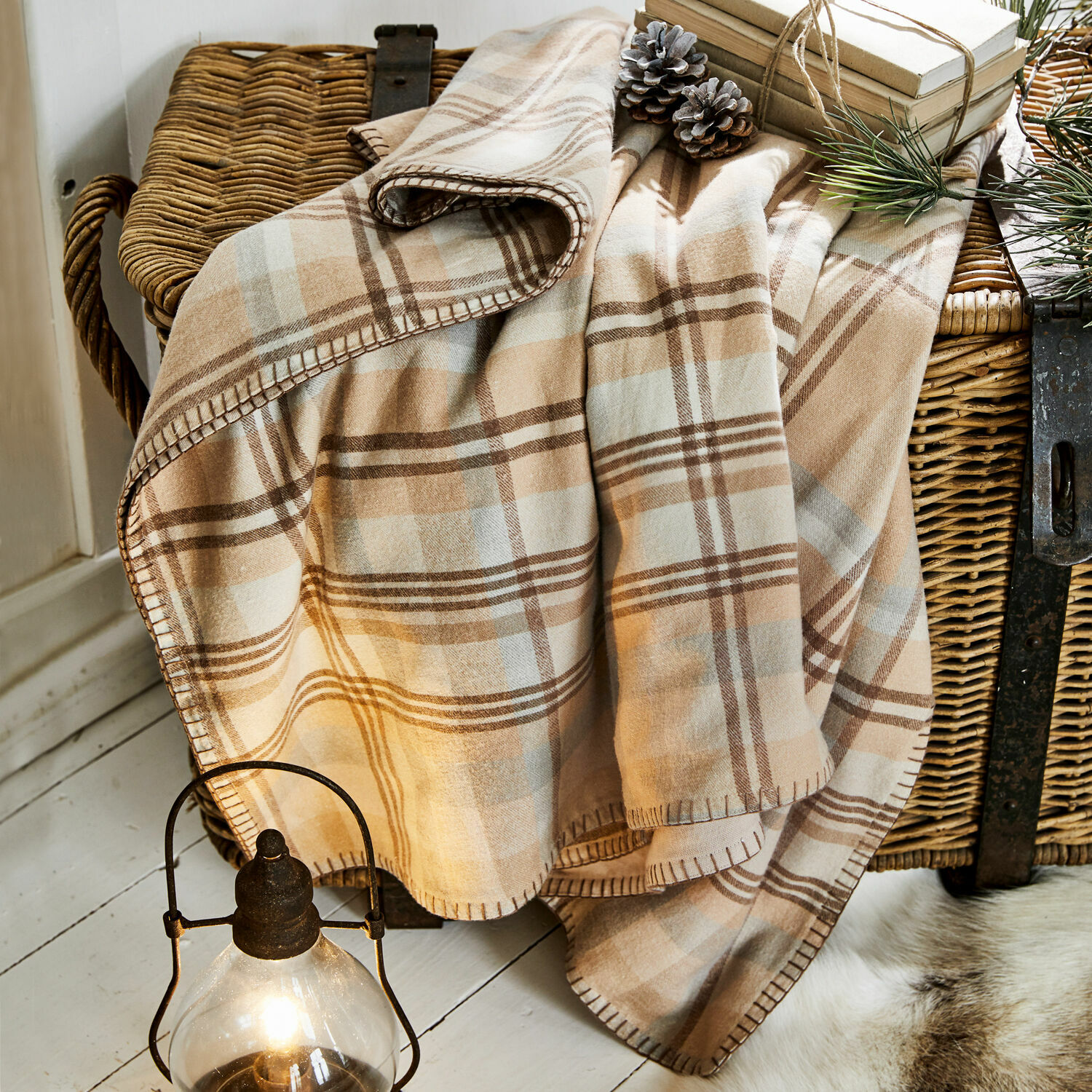 Karo gehört zu den Muster-Klassikern, die nie aus der Mode kommen – auch in der Welt des Wohnens. Vor allem traditionelle Design-Varianten dienen als beliebte Vorlage wie beispielsweise das Tartan-Muster, was auch als Schottenkaro bekannt ist. Hierbei lassen beim Weben viele verschiedene Fäden das individuelle Bild entstehen. Bei diesem Plaid zeigt sich das Karo von seiner edel eleganten Seite – mit einer sanften Farbkombination und einer hochwertigen Baumwollqualität. Das Gewebe liegt angenehm sympathisch auf der Haut und verwöhnt durch seine klimaaktiven Eigenschaften mit purem Wohlgefühl. Einen spannenden Gegenpart bildet die rückseitige Stofflage in Unifarbe. Der schmuckvolle Langettenstich entlang der Kanten rundet das Gesamtbild stilvoll ab. Ein unverzichtbares Wohnaccessoire, das nicht zu voluminös, aber trotzdem angenehm weich ist. Es setzt dekorative Akzente und macht entspannte Stunden auf dem Sofa oder Lieblingssessel noch schöner. Warm eingehüllt, können Sie damit auch wunderbar sonnige Wintermomente auf der Terrasse oder im Vorgarten genießen. Passend dazu: das Kissen Nr. 19941.