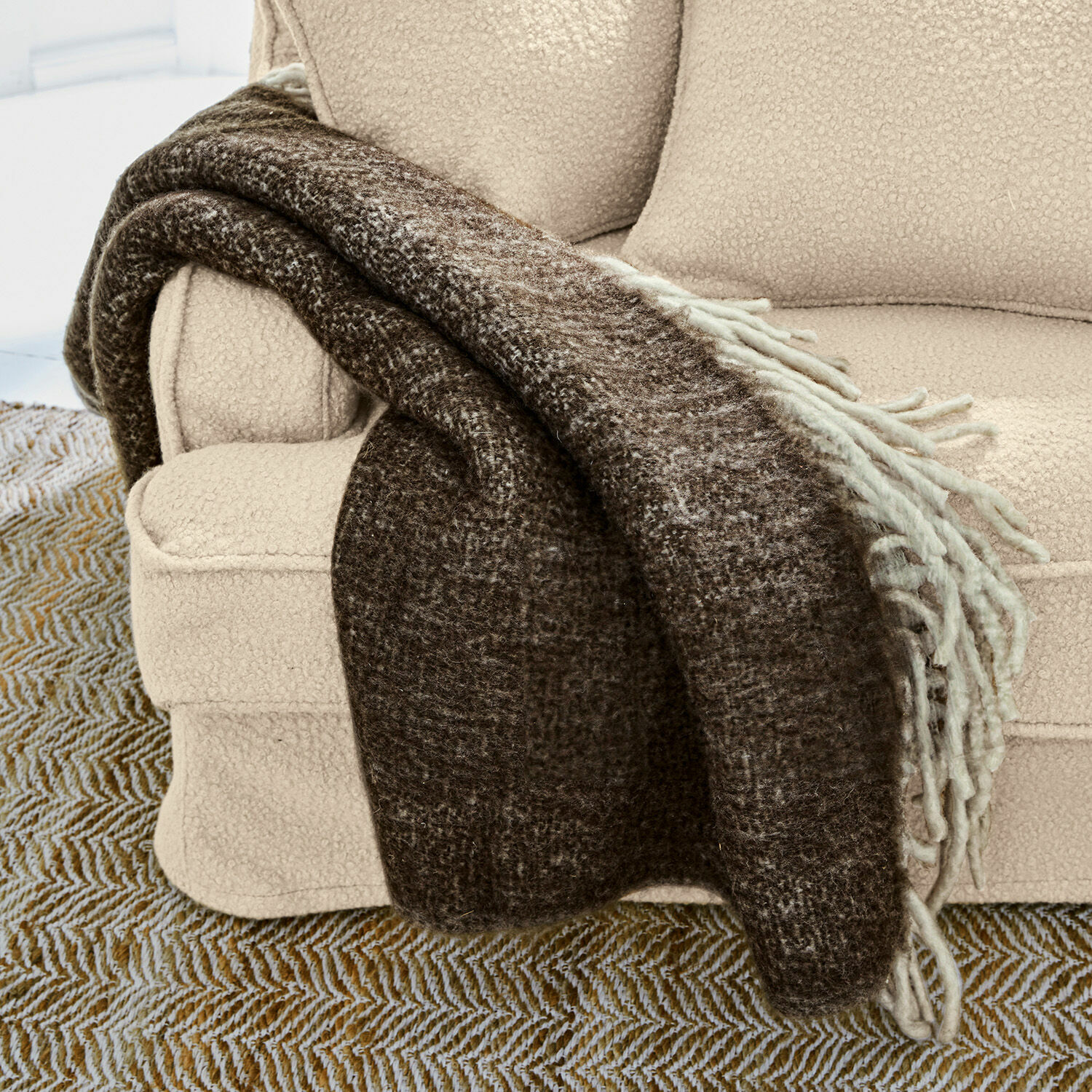 Nicht nur in der kalten Jahreszeit sehnt man sich nach gemütlichen Momenten – am liebsten ganz entspannt mit einem guten Buch auf der Couch. Da sind Wohlfühl-Accessoires wie dieses edle Plaid einfach unverzichtbar. Durch seine zwei farblich abgestimmten Seiten ist es nicht nur äußerst dekorativ, sondern auch abwechslungsreich und anpassungsfähig. Die auffallend langen Fransen an den Schmalkanten sind schmückendes Extra. Unsere Materialwahl fiel auf eine ausgewogene Mischung aus Wolle und Acryl. Denn Decken aus reiner Wolle sind zwar natürlich, doch fühlen sie sich meist kratzig auf der Haut an. Der hohe Kunstfaseranteil macht das Gewebe ausgesprochen weich, zudem strapazierfähig und langlebig. Hüllen Sie sich ein in Ihr neues Lieblingsstück und lassen Sie sich verwöhnen von der angenehmen Wärme und den kuschelig weichen Streicheleinheiten.