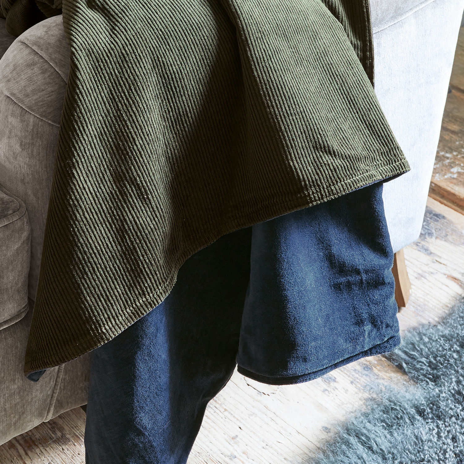 Drehen und wenden Sie nach Lust und Laune. Samt und Cord liegen im Interieur-Design absolut im Trend und vereinen sich hier zu einem einzigartigen Wendeplaid mit hohem Kuschelfaktor. In der Haptik sind sich die beiden Baumwoll-Qualitäten sehr ähnlich – der Flor begeistert mit einer unwiderstehlichen, flauschigen Weichheit, außerdem schenkt er ein angenehmes Wärmegefühl auf der Haut. Beim genauen Hinsehen offenbart sich ihr besonderer Charakter: Der exquisite Samt wirkt durch seinen feinen Glanz sehr edel und glamourös, während der hochwertige Cord mit einer erhabenen Rippenstruktur fasziniert. Trotz gedeckter Farbgebung erzielt das Plaid ein eindrucksvolles Kontrastspiel und verleiht Räumen wie Wohn- oder Schlafzimmer einen behaglichen, stilvollen und doch abwechslungsreichen Akzent. Verwöhnen Sie sich mit diesem ganz besonderen Luxus.