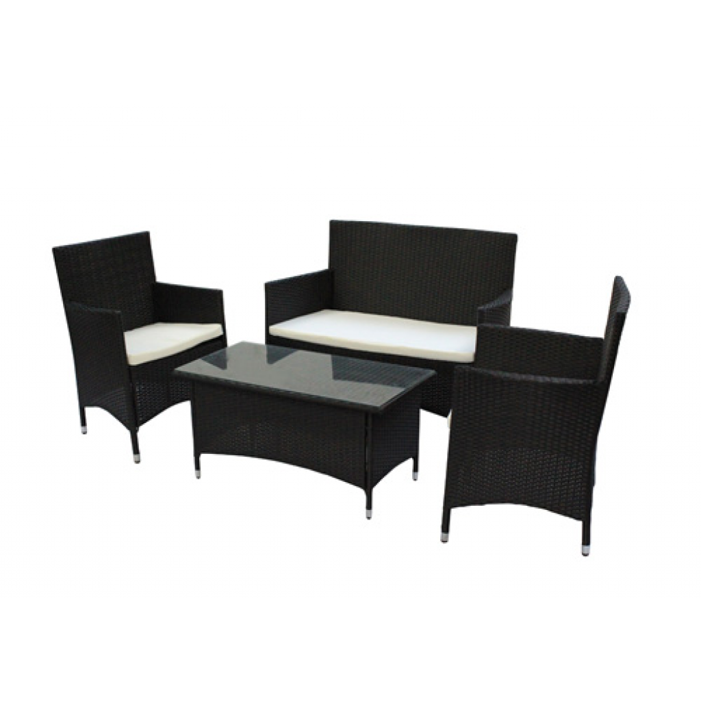 Dieses Rattanset besteht aus: 1 Tisch, 2 Stühle, 1 Doppelsofa und 3 abnehmbaren Kissen. PE Rattan ist eine Kunststofffaser, extra für Gartenmöbel entwickelt. Das macht sie absolut wetterfest, UV-Lichtbeständig, schmutzabweisend, einfach zu reinigen und umweltfreundlich. Die Gartenmöbel können bei jedem Wetter, rund ums Jahr draußen stehen, ohne Schaden zu nehmen.Farbe: SchwarzDie Füße der Stühle sind aus AluminiumKissen aus wetterfestem Stoff (100% Polyester) und abnehmbar, so dass sie gewaschen werden können.Farbe von Kissen: WeißDicke der Sitzpolster: 5 cmPE Rattan ist wetter- und wasserresistentLeicht abwaschbarSehr UV-LichtbeständigTechnische Daten:Doppelsofa: 109 x 58 x 87 cm Stühle: 86 x 60 x 56 cm (H x B x T)Tisch: 93 x 48 x 46 cm (L x B x H)