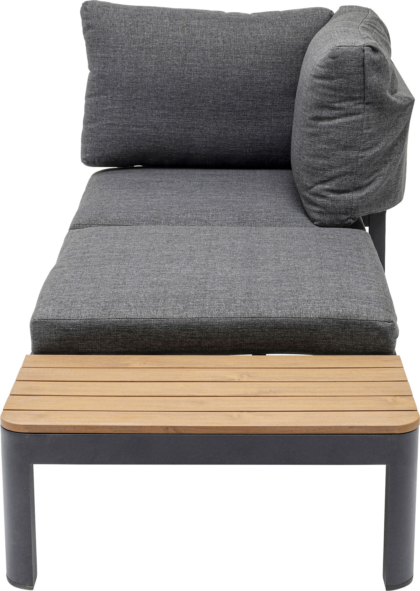 Was gibt es Schöneres, als bei den ersten Sonnenstrahlen das Leben nach draußen zu verlagern? Gut, wenn da gleich ein bequemes Plätzchen bereit steht, wo man ganz komfortabel auch die Beine hochlegen kann. Abstellfläche für den Sun-Downer inklusive. Material: (Gestell: Aluminium pulverbeschichtet, Tischplatte: Polywood, Beine: Aluminium pulverbeschichtet, Bezug: Polyester, Posterung: 22 kg/m³ Polyester)