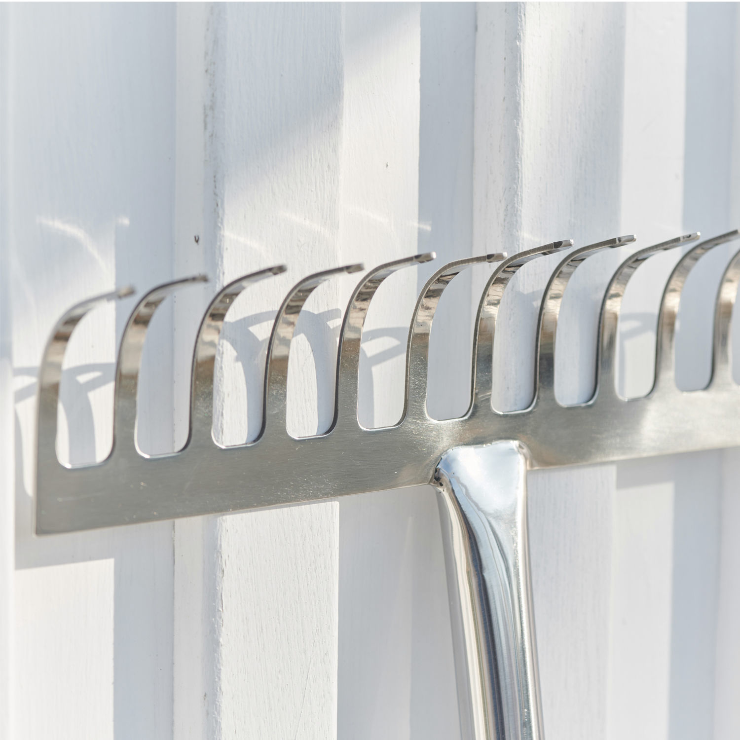 Wenn Sie in Ihrem Garten ein Saatbeet für Gemüse oder Blumen vorbereiten möchten, gehört dieser Rechen zu Ihren talentiertesten Helfern. Dabei übernimmt er nicht nur die sorgfältige Säuberung der Fläche, sondern sorgt auch für eine gleichmäßige Ebene – und mit dem Stil lassen sich saubere, kleine Mulden für die Saatkörner formen. Selbstverständlich ist das Werkzeug auch für die Bearbeitung von Ihren bestehenden Rabatten und Beeten ideal. So kann damit wunderbar Dünger eingearbeitet oder das Unkraut gelockert werden. Die breite Harke mit ihren leicht geschwungenen Zinken ist aus stabilem Edelstahl gefertigt. Der lange, praktische Stiel aus robustem Buchenholz rundet das Gartengerät ab. Eine gelungene Kombination aus hochwertigen Materialien, perfekter Funktion und langer Lebensdauer. Freuen Sie sich auf eine spannende Gartensaison!