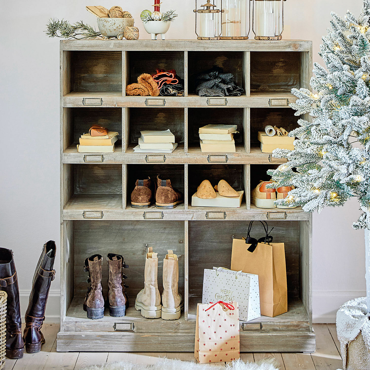 Wollen Sie Ihre vier Wände mit etwas ganz Außergewöhnlichem verzaubern? Dann wird Ihr Wunsch mit diesem Regal Realität. Es bringt nostalgischen Charme aus der Zeit unserer Urgroßeltern in Ihr Zuhause. Mit seinen vielen liebevollen Details erinnert es an historische Möbelstücke aus vergangenen Tagen. Vor allem die stilprägenden Etikettrahmen an den Fächern und das fein gemaserte Tannenholz unterstreichen die klassische Optik dieses faszinierenden Schmuckstücks. Leicht kann man sich vorstellen, dass das Regal einst in einem noblen Haus als Schuhschrank diente und Schuhwerk aller Art aufbewahrte – zum Beispiel Stiefel, Sandalen, Ballerinas oder Stöckelschuhe. Aber vielleicht stand es auch in einer Apotheke und beherbergte verschiedene Flacons und Heilmittel. Oder vielleicht war es einmal in einem kleinen Krämerladen und diente verschiedenen Gebrauchs- und Dekoartikeln als Schauplatz. Nutzen Sie es nun für Ihre liebsten Schuhe oder Gegenstände und machen Sie das Regal noch schöner, indem Sie die Etikettenrahmen verwenden und durch Zettel mit Ihrer fein geschwungenen Schrift verzieren.