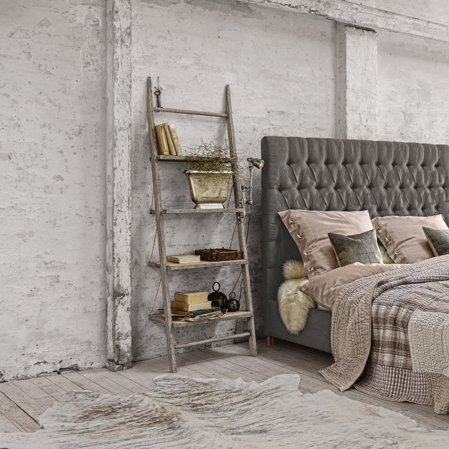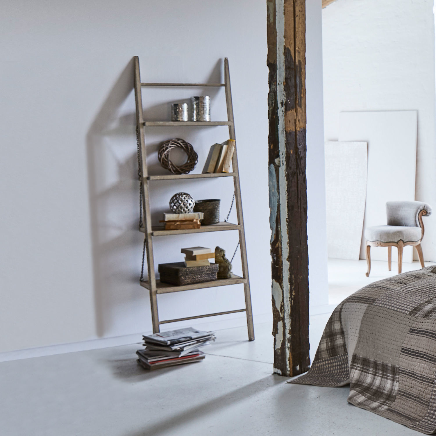 Klappbares Leiterregal in handgearbeiteter Qualität. Das Eisen-Gestell ist mit einem rustikalen Finish versehen, das dem Regal neben den naturbelassenen Ablageböden […]