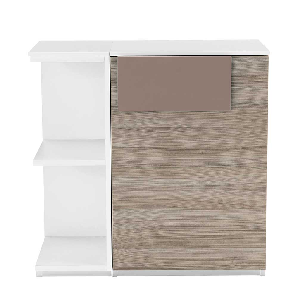 – Kommode Weiß, Holz und Taupe – Küchenkommode Spanplatte – Wohnzimmer kommode Modern & Jung – Wohnzimmerkommode Breite: 76 – Höhe: 74 – Tiefe: 37 – Schrank-Tür: mit Drehtüren – 1-türig, Innenaufteilung: mit Einlegeböden – Anschlag (Scharniere) der Türen: Rechts (Linksseitig zu öffnen) – Ohne Beleuchtung – Fertig montierte Anlieferung (eventuell müssen noch Kleinteile angebracht werden) – Deutsche Produktion – Melaminbeschichtet – Mit stoßfesten ABS Kanten – Rechteckige Form – Holzwerkstoff TürInformationen zur Lieferung:Die Zustellung dieses Produktes erfolgt per Spedition. Sie werden vor der Auslieferung durch die ausliefernde Spedition kontaktiert.Terminvereinbarung: Sie werden frühzeitig (ein paar Tage im Voraus) durch die ausliefernde Spedition kontaktiert und Ihnen der Auslieferzeitpunkt mitgeteilt. Die Kontaktaufnahme erfolgt per Telefon. Bei telefonischer Nichterreichbarkeit werden Sie per Postkarte über das Auslieferdatum informiert.Die Lieferung erfolgt aus Kostengründen Frei Bordsteinkante (bis zur ersten verschlossenen Tür). Für den weiteren Transport der Ware sind Sie eigenverantwortlich.Die Auslieferung erfolgt von Montags bis Freitags. Eine Zustellung an Sonn- und Feiertagen ist nicht möglich.