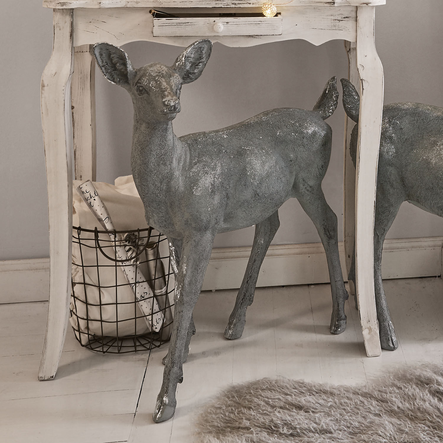 Nicht nur Bambi-Fans erstrahlen beim Anblick dieser eleganten Skulptur. Sie wird in klassischer Handarbeit aus Kunststein geformt und weist eine Vielzahl raffinierter Details auf. Selbst die feine Muskulatur der Beine ist erkennbar. Das bezaubernde Kunstwerk glänzt zudem mit einer wunderschönen Patina, die den hochwertigen Charakter unterstreicht. Verarbeitung und Materialwahl verleihen dem Schmuckstück einen zeitlos schönen Charakter.