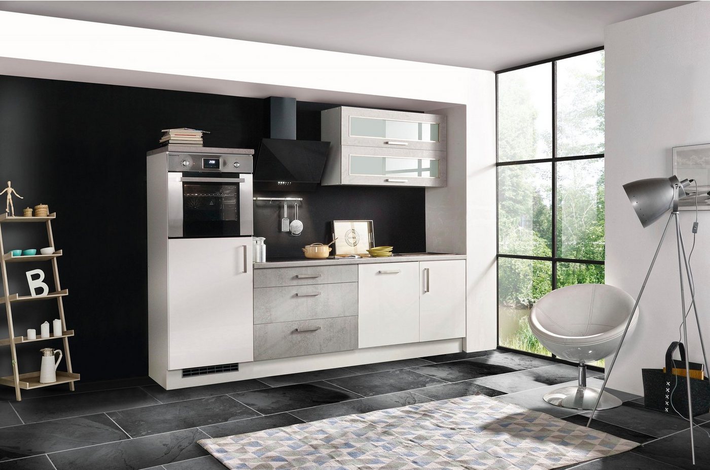 Die Küchenzeile »Lier« von RESPEKTA mit Hochglanz-Fronten ist eine stylische und praktische Komplettlösung für deine Küche. Zurückhaltende Farben und eine Arbeitsplatte in Betonoptik machen das Design aus. Kombinieren lässt sich der Küchenblock zu Einrichtungen im modernen, eleganten sowie auch zeitlosen Stil. Geliefert wird mit einem Spülenschrank und Hängeschrank, in denen du Stauraum für deine Küchenartikel findest. Versehen mit einer Soft-Close-Funktion lassen sich die Schubkästen materialschonend und leise schließen. Damit du deine Kochrezepte umsetzen kannst, gehören auch diverse E-Geräte zur Einbauküche. Ergänzt wird diese durch eine Arbeitsplatte ohne Ausschnitte, die sich variabel stellen lässt. Setzt auf eine ansprechende Farbkombination: die Küchenzeile »Lier« von RESPEKTA mit Hochglanz-Fronten.