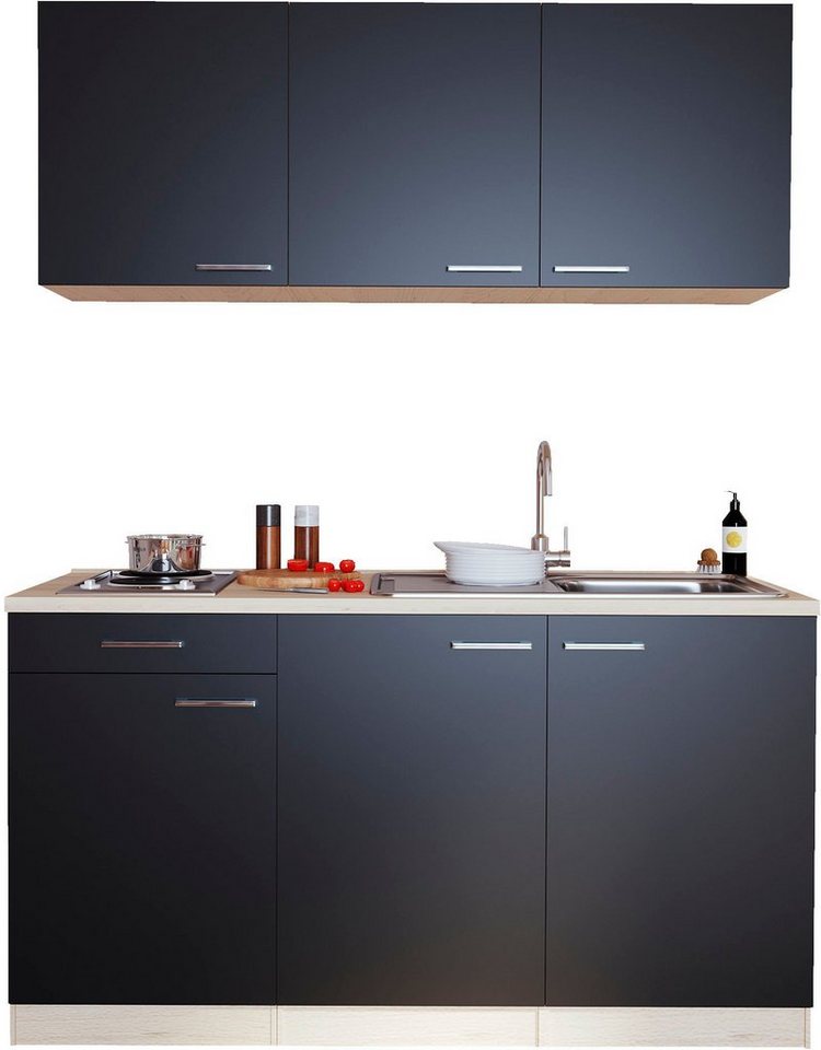 Ein Blickfang in deiner Einrichtung ist die stilvolle Küche »Luis« von RESPEKTA. Ihr Design ist durch moderne Farben und eine Arbeitsplatte in Holzoptik bestimmt. Dank verschiedener Dekore kannst du den Küchenblock nach deinen individuellen Vorlieben auswählen. In den Hängeschränken sowie im Spülen- und Unterschrank befindet sich viel Stauraum für deine Küchenartikel. Ausgestattet ist die Einbauküche zudem mit E-Geräten samt einer Edelstahlkochmulde. Auf Wunsch lässt sie sich mit einer Mikrowelle bestellen. Die Griffe werden aus Kunststoff in Alu-Optik gefertigt. Damit der Abwasch noch mehr Spaß macht, verfügt die Küchenzeile auch über eine hochwertige Edelstahl-Einbauspüle mit Abtropffläche. Punktet mit zahlreichen Aufbewahrungsmöglichkeiten für deine Küchenhelfer: die stilvolle Küche »Luis« von RESPEKTA.