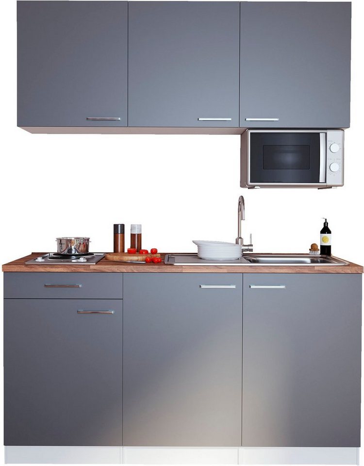 Die Küche »Luis« von RESPEKTA mit Edelstahlkochmulde ist die optimale Wahl für deine Singleküche. Sie zeichnet sich durch einen modernen Look aus und ist mit einer farblich abgesetzten Arbeitsplatte gestaltet. In mehreren Farben erhältlich, kannst du die Küchenzeile nach deinen persönlichen Wünschen auswählen. Für dein tägliches Kochvergnügen besitzt sie ein Kochfeld mit Platten sowie einer Edelstahlkochmulde. Auf Wunsch kannst du die Einbauküche zudem mit einer Mikrowelle bestellen. Zu den weiteren Ausstattungsmerkmalen gehört eine hochwertige Edelstahl-Einbauspüle mit Abtropffläche. Passt super in kleine Räume: die Küche »Luis« von RESPEKTA mit Edelstahlkochmulde.