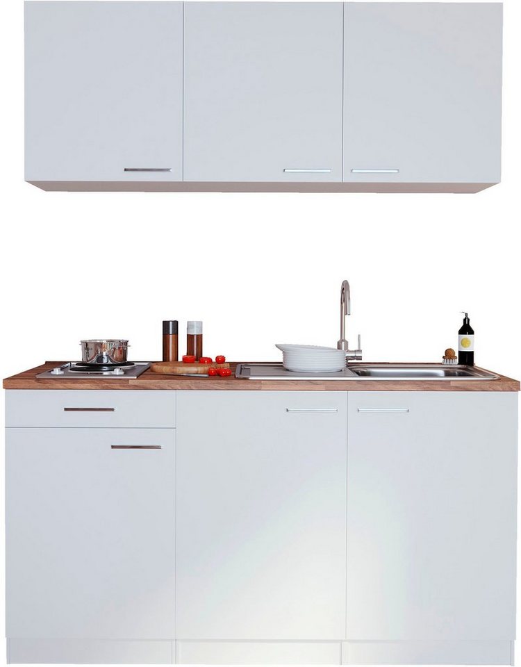 Die Küche »Luis« von RESPEKTA mit Edelstahlkochmulde ist die optimale Wahl für deine Singleküche. Sie zeichnet sich durch einen modernen Look aus und ist mit einer farblich abgesetzten Arbeitsplatte gestaltet. In mehreren Farben erhältlich, kannst du die Küchenzeile nach deinen persönlichen Wünschen auswählen. Für dein tägliches Kochvergnügen besitzt sie ein Kochfeld mit Platten sowie einer Edelstahlkochmulde. Auf Wunsch kannst du die Einbauküche zudem mit einer Mikrowelle bestellen. Zu den weiteren Ausstattungsmerkmalen gehört eine hochwertige Edelstahl-Einbauspüle mit Abtropffläche. Passt super in kleine Räume: die Küche »Luis« von RESPEKTA mit Edelstahlkochmulde.
