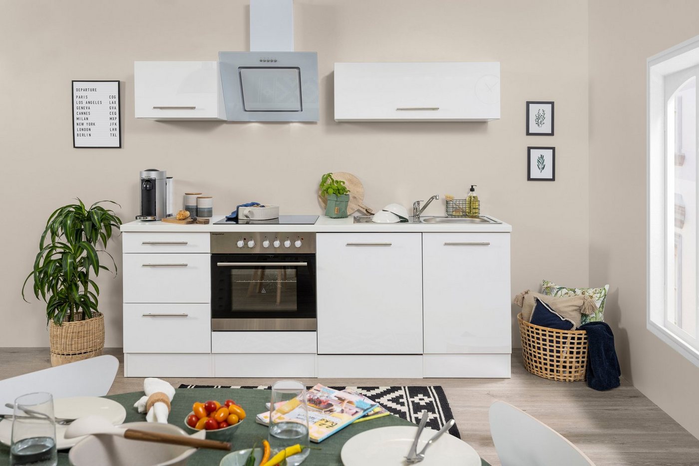 Überzeugt mit modernem Design und funktionalen Ausstattungsmerkmalen: die professionell zusammengestellte Küchenzeile »RP220« aus dem Hause RESPEKTA. Sie umfasst von der Dunstabzugshaube bis hin zum Geschirrspüler alle notwendigen E-Geräte, die du regelmäßig benötigst. Umbauschränke ermöglichen die perfekte Integration. Hinzu kommen Hängeschränke, in denen viel Stauraum für Küchenutensilien und Lebensmittelvorräte zur Verfügung steht. Gefertigt wird der Küchenblock in solider Qualität aus Holzwerkstoff mit Hochglanzfronten, die formschönen Stangengriffe bestehen aus Metall. Auszüge und Türen schließen leise dank einer integrierten Soft-Close-Funktion. Die Küchenzeile »RP220« von RESPEKTA ist eine attraktive Komplettlösung für deine modern ausgestattete Küche.
