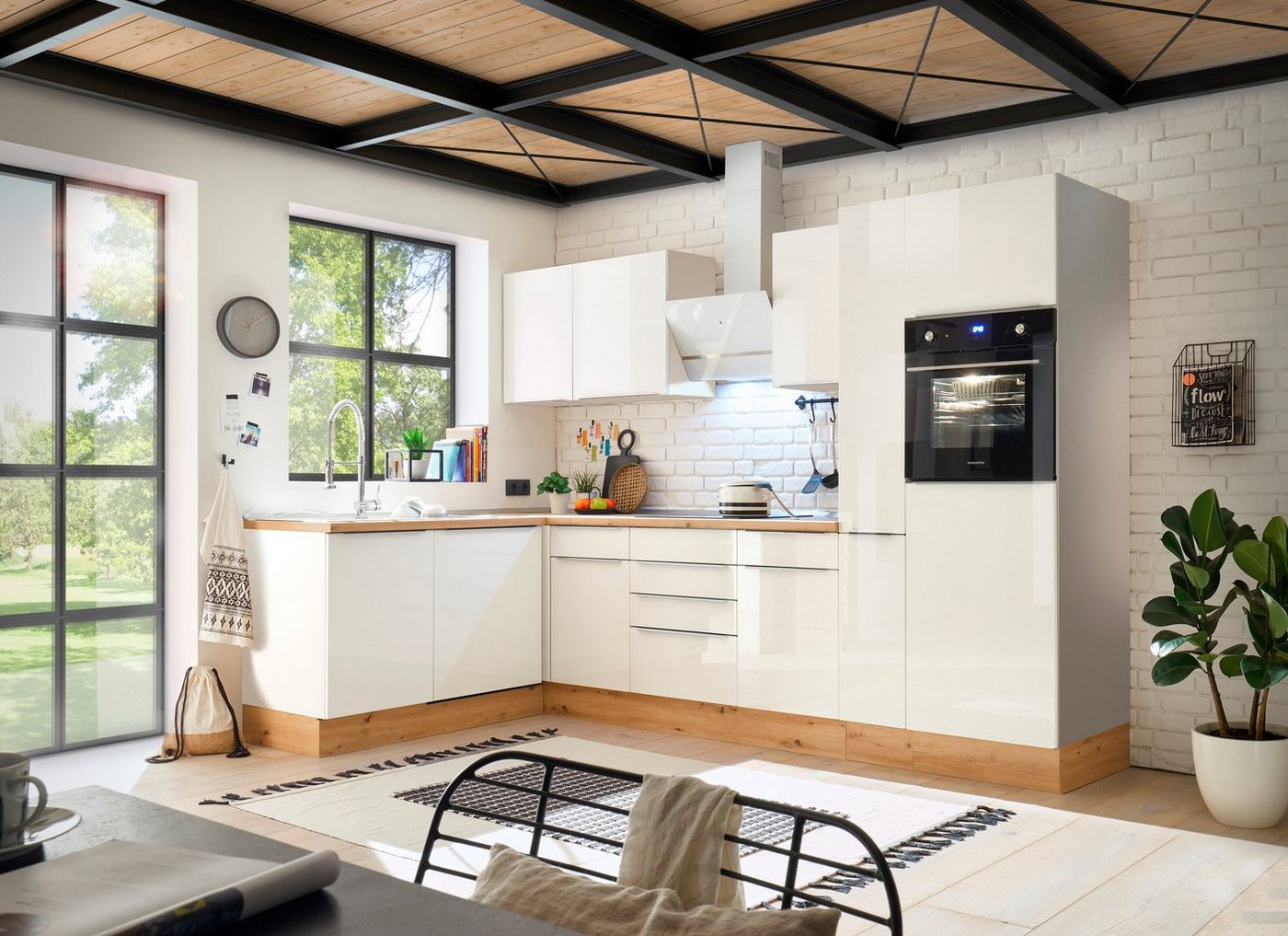 Eine clevere Platzausnutzung bietet diese Winkelküche »Safado« von RESPEKTA mit E-Geräten. Sie besticht im modernen Design und steht in verschiedenen Farben zur Auswahl. Attraktive Metallgriffe ergänzen das Erscheinungsbild. In ihren Hängeschränken, dem Unterschrank, Eck-Unterschrank und Apothekerschrank offenbart die L-Küche viel Stauraum für deine Küchenartikel. Durch eine Soft-Close-Funktion schließen die Küchenschränke leise und materialschonend. Ebenfalls im Lieferumfang inklusive sind Elektrogeräte wie ein Kochfeld, Kühlschrank, Geschirrspüler und Backofen. Komplettiert wird die Eckküche durch eine Einbauspüle aus Edelstahl sowie durchgehende Arbeitsplatte ohne Ausschnitte. Wertet deine Küche geschmackvoll auf: die Winkelküche »Safado« von RESPEKTA mit E-Geräten.