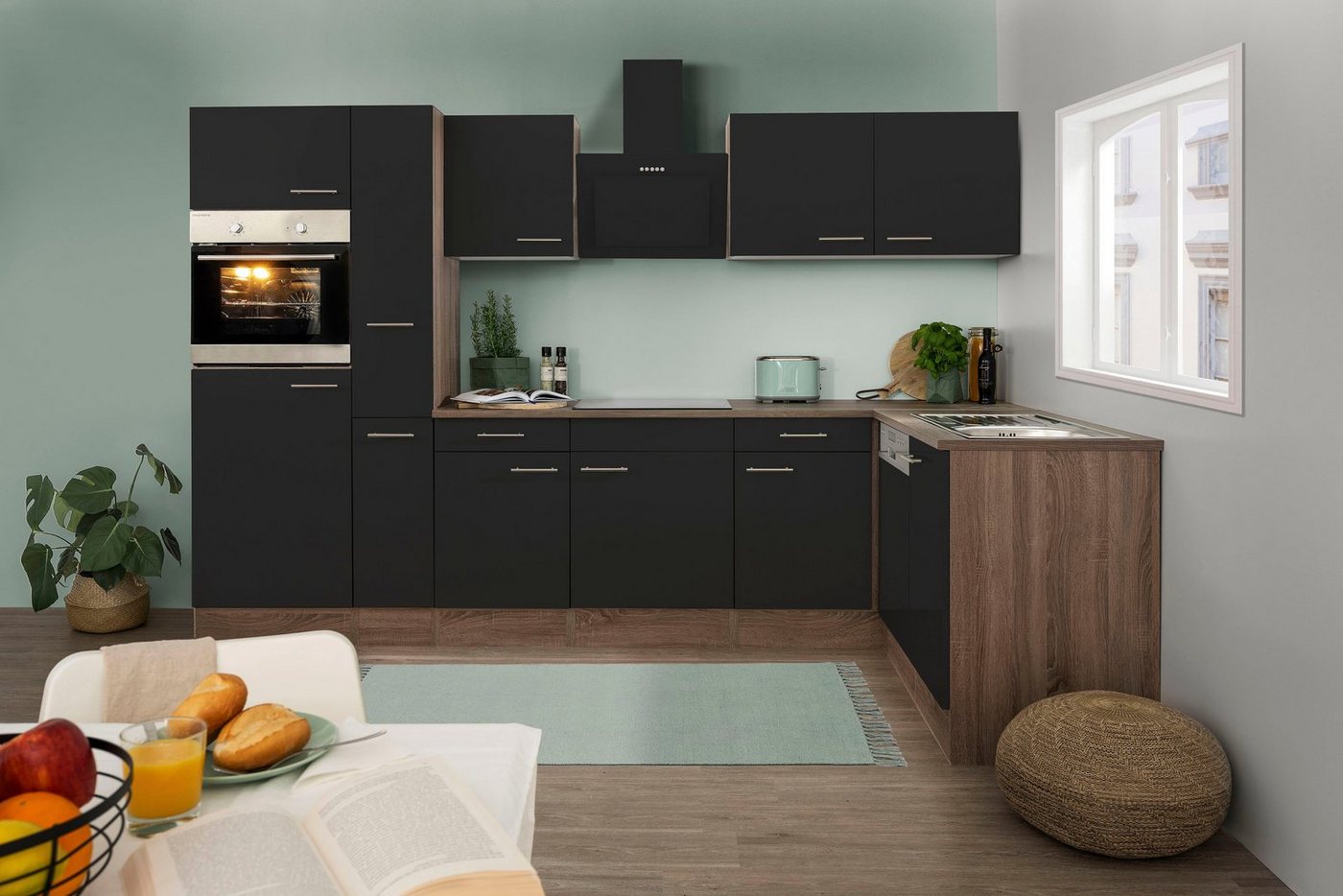 Die Winkelküche »York« mit E-Geräten und Design-Schrägschirmhaube punktet mit einer modernen Optik. Ihre geradlinige Gestaltung harmoniert mit vielen Wohnkonzepten und bietet gute Kombinationsmöglichkeiten. Diese Einbauküche ist in mehreren seidenglänzenden Farbausführungen erhältlich. Sie ist mit einem autarken Ofen und einem Glaskeramik-Kochfeld ausgestattet. Außerdem bieten dir ein 4 * Kühlschrank und ein Geschirrspüler eine komfortable Unterstützung im Alltag. Die Lieferung der Möbel und Geräte erfolgt bis an deinen Wunschplatz. Mit der Winkelküche »York« mit E-Geräten und Design-Schrägschirmhaube stattest du deine Küche stilvoll und funktionell aus.