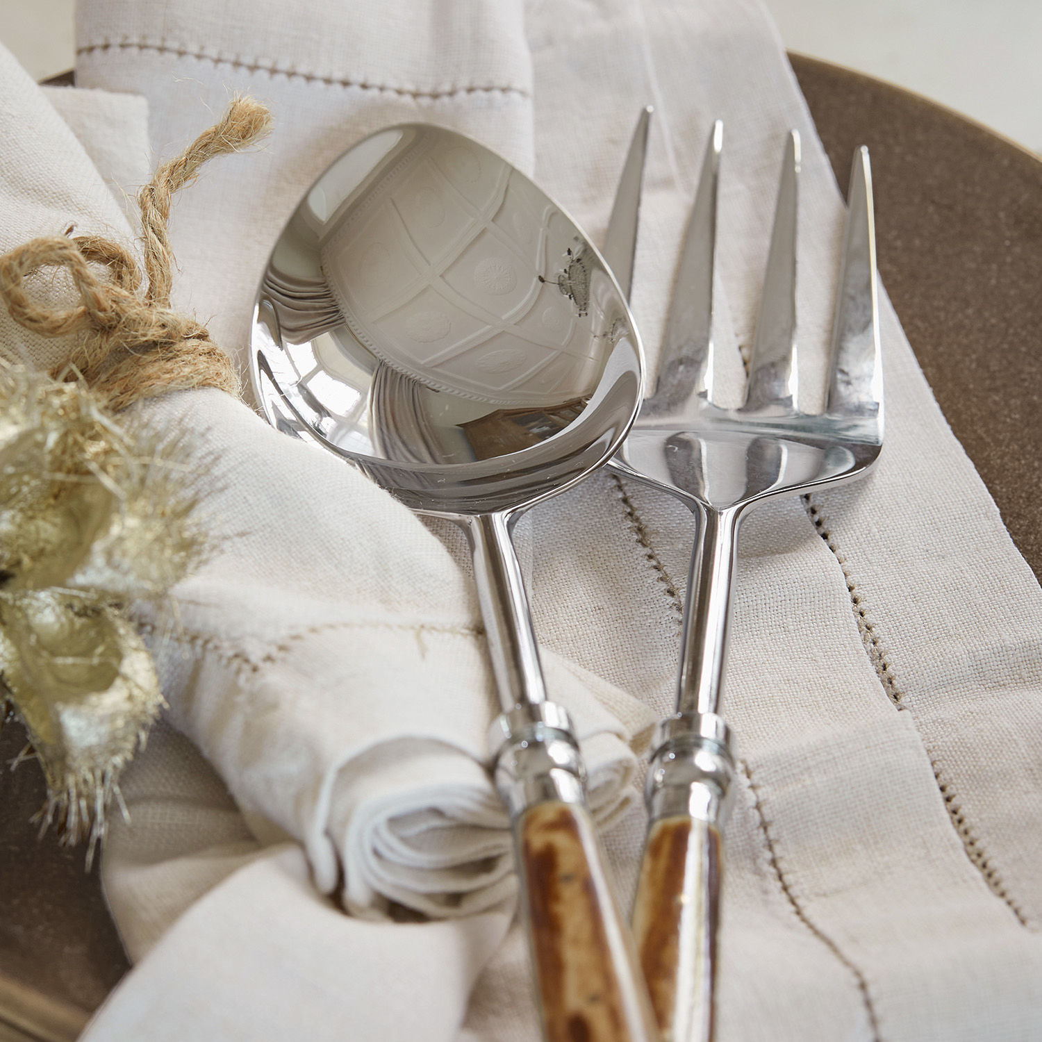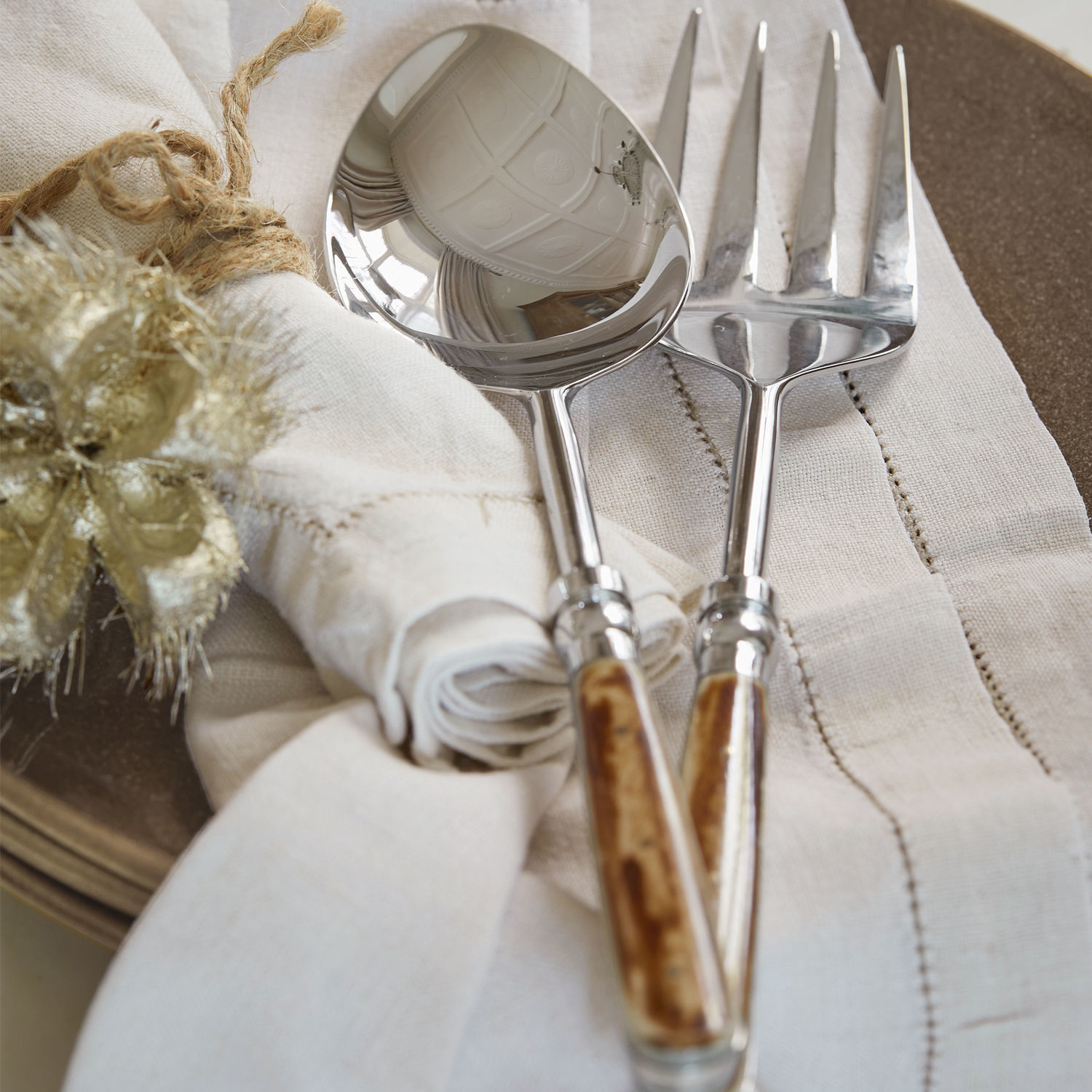 Ein Tisch-Accessoire mit einer Extraportion Stil und Eleganz. Das wertvolle Salatbesteckt hat edle Griffe aus Wasserbüffelhorn und besteht aus glänzendem Edelstahl. Das Design ist exquisit, die Haptik sehr angenehm – es liegt gut in der Hand. Hiermit lässt sich Kartoffelsalat, grüner Salat und mehr bestens portionieren. Verleihen Sie Ihrer gedeckten Tafel noch mehr Charme und speisen Sie bewusst und voller Genuss. Details wie dieses feine Besteck machen jede Mahlzeit zum Erlebnis und sorgen für ein gehobenes Lebensgefühl – nicht nur zu Feiertagen. Ergänzen Sie das tolle Set mit dem passenden Ess- und Steak-Besteck Bigeste (15060, 18210).