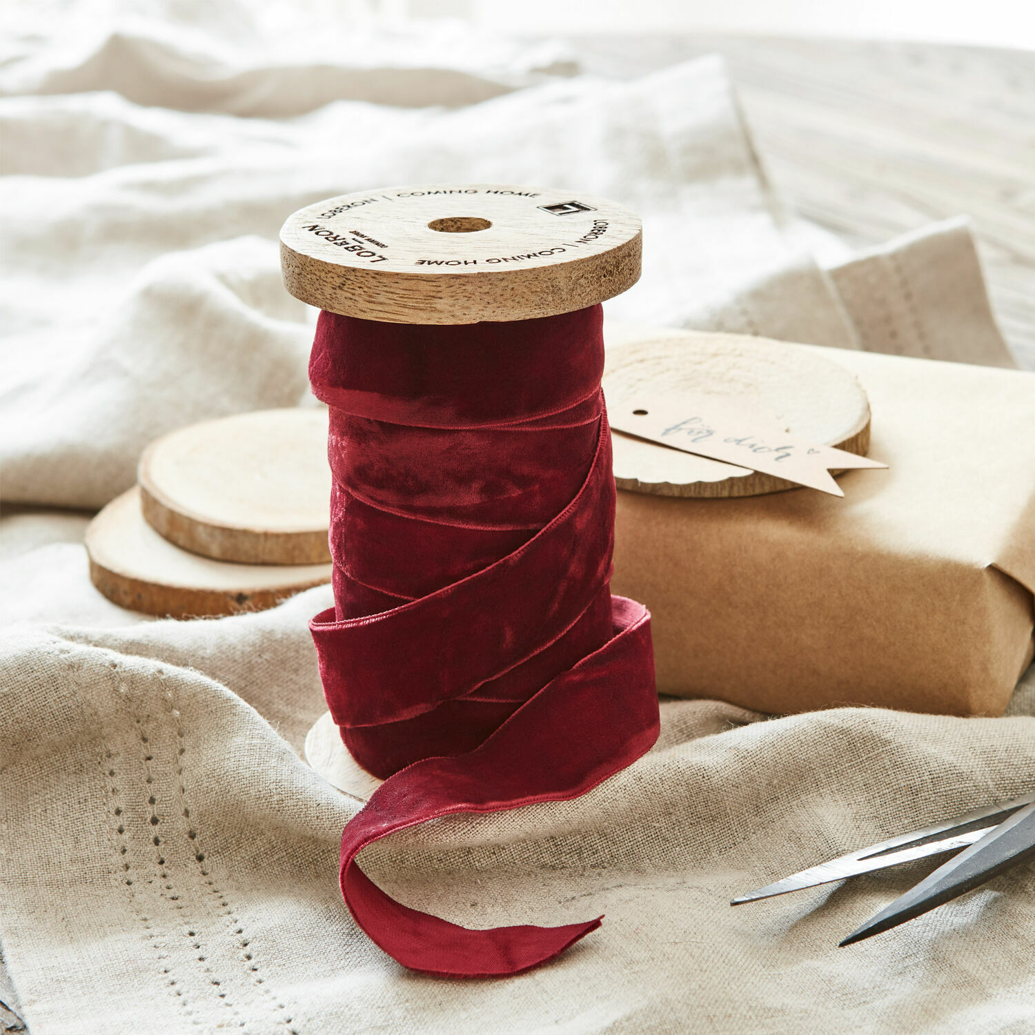 Meistens verschwinden die kleinen Haushaltshelfer nach Gebrauch schnell wieder in der Schublade. Nicht so diese Samtband-Spule. Standhaft setzt sie sich mit einer Spule aus wertvollem Mangoholz und einem Schmuckband aus weichem Samt nobel in Szene. Das LOBERON-Branding sorgt für das i-Tüpfelchen und verrät die Herkunft des hübschen Accessoires. Der Retro-Charme ist unverkennbar. Und die Vielseitigkeit ist enorm. Denn das originelle Design ist zusammen mit schönen Stoffen und kleinen Schmuckstücken auch als Dekoakzent perfekt einsetzbar. Das 1 m langes Samtband mit einseitigem Flor lässt sich komplett abrollen und verleiht Ihren kreativ verpackten Geschenken ein edles Finish. Stil und Funktion können eben wunderbar harmonieren.